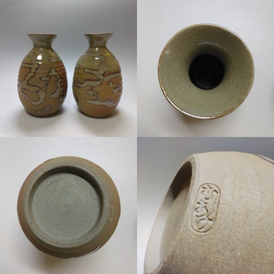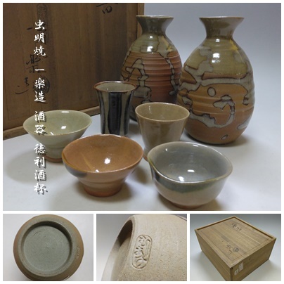 【T-373】虫明焼 一楽造 酒器 徳利2/酒盃5 共箱付 | |||