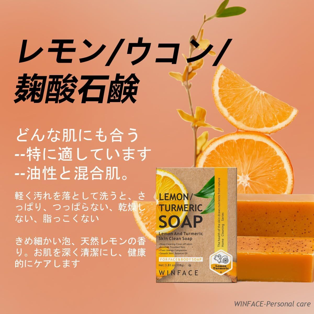 天然成分: レモンとウコンを配合した石鹸で、肌を優しく洗浄しながら透明感のある肌へ導きます