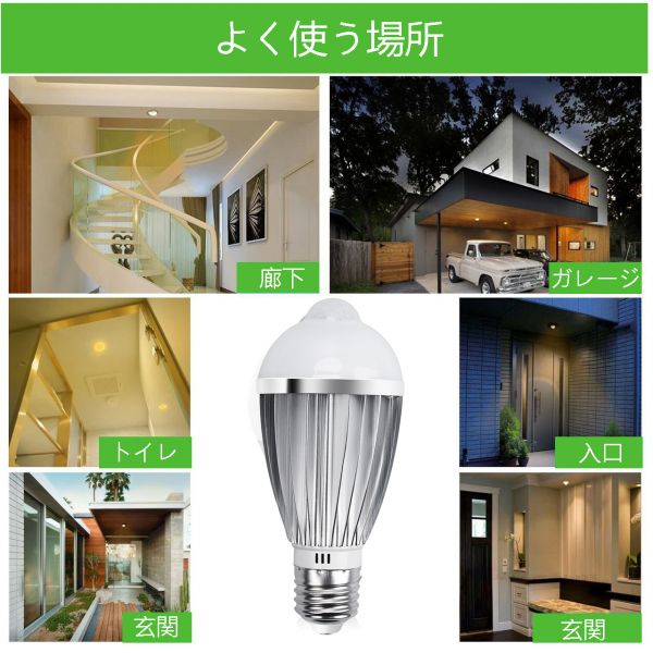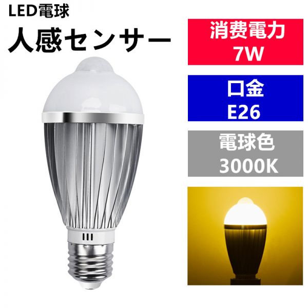 LED電球 人感センサー E26口金 電球色 7W 40W 相当 センサーライト 1個セット