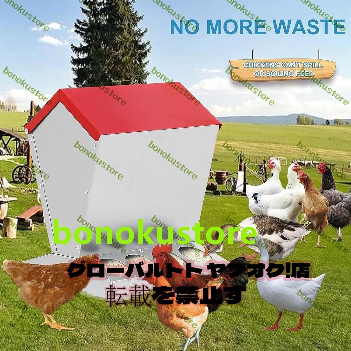 11KG 自動鶏フィーダー、ステンレス製の蓋付き 10 穴屋外家禽フィーダー、便利なオンデマンド給餌で無駄がなく、チャボ、キジ、ウズラの繁殖に最適なヘルパーです。