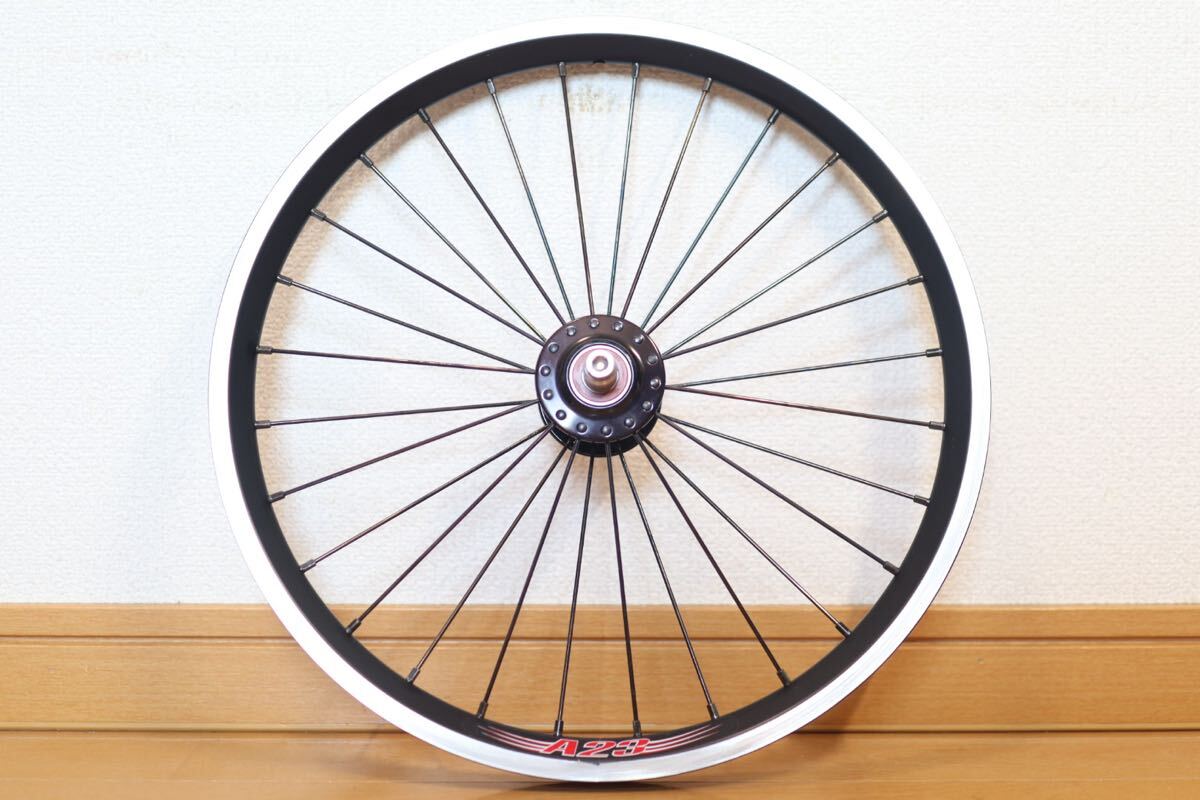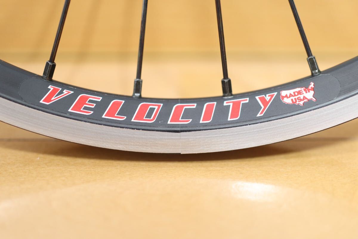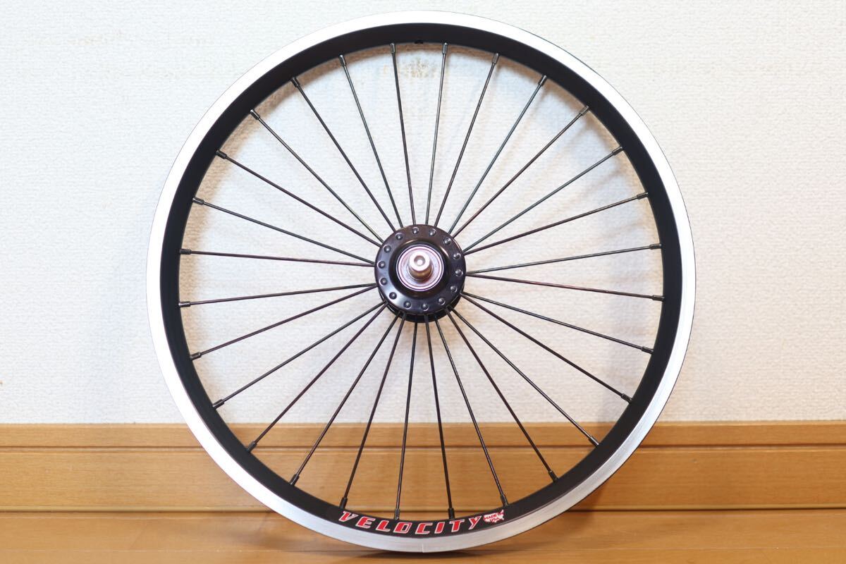オーストラリア生まれのリムメーカー"VELOCITY / ベロシティー"のクリンチャーリム"A23"を使って組み上げたブロンプトン用フロントホイールです。