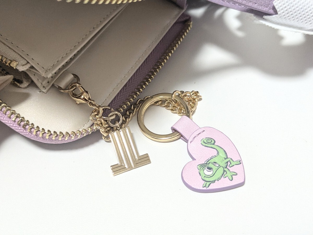 「ラプンツェル」を象徴する塔のプリントや「パスカル」のチャームなど遊び心満載の
