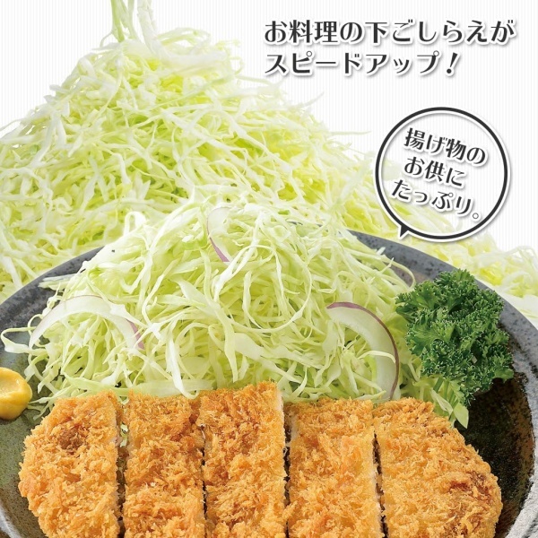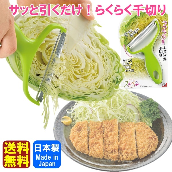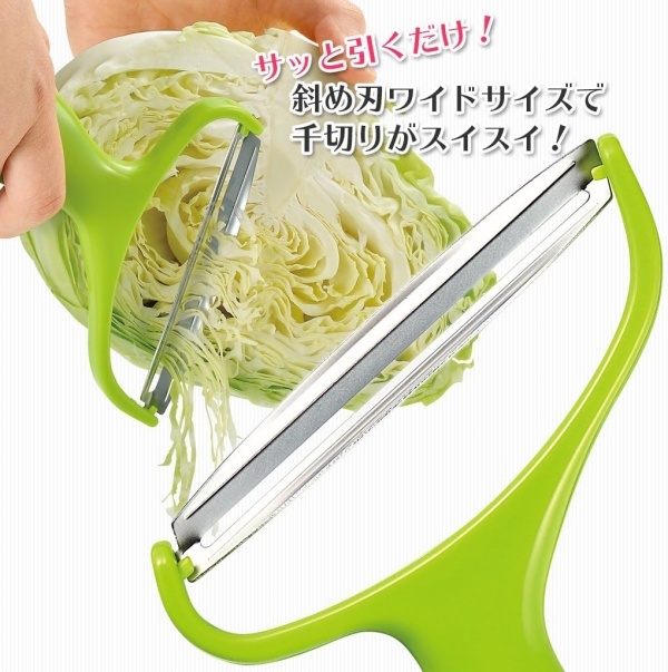 【商品説明】サッと引くだけ!らくらくキャベツの千切りが出来ます。まな板を使わずに手早く簡単にキャベツの千切りがすいすいできます。斜め刃ワイドサイズで料理の下ごしらえがスピードアップ。握りやすく使いやすいハンドル形状です【サイズ】約18cm×11.5cm、重量:約45g【生産国】日本【素材】本体:ABS樹脂、刃:ステンレス刃物鋼【メーカー】下村工業