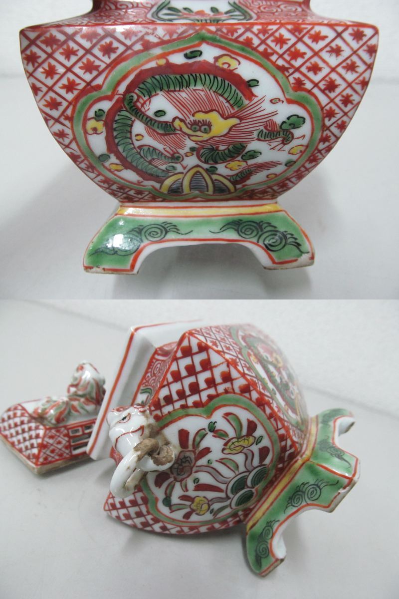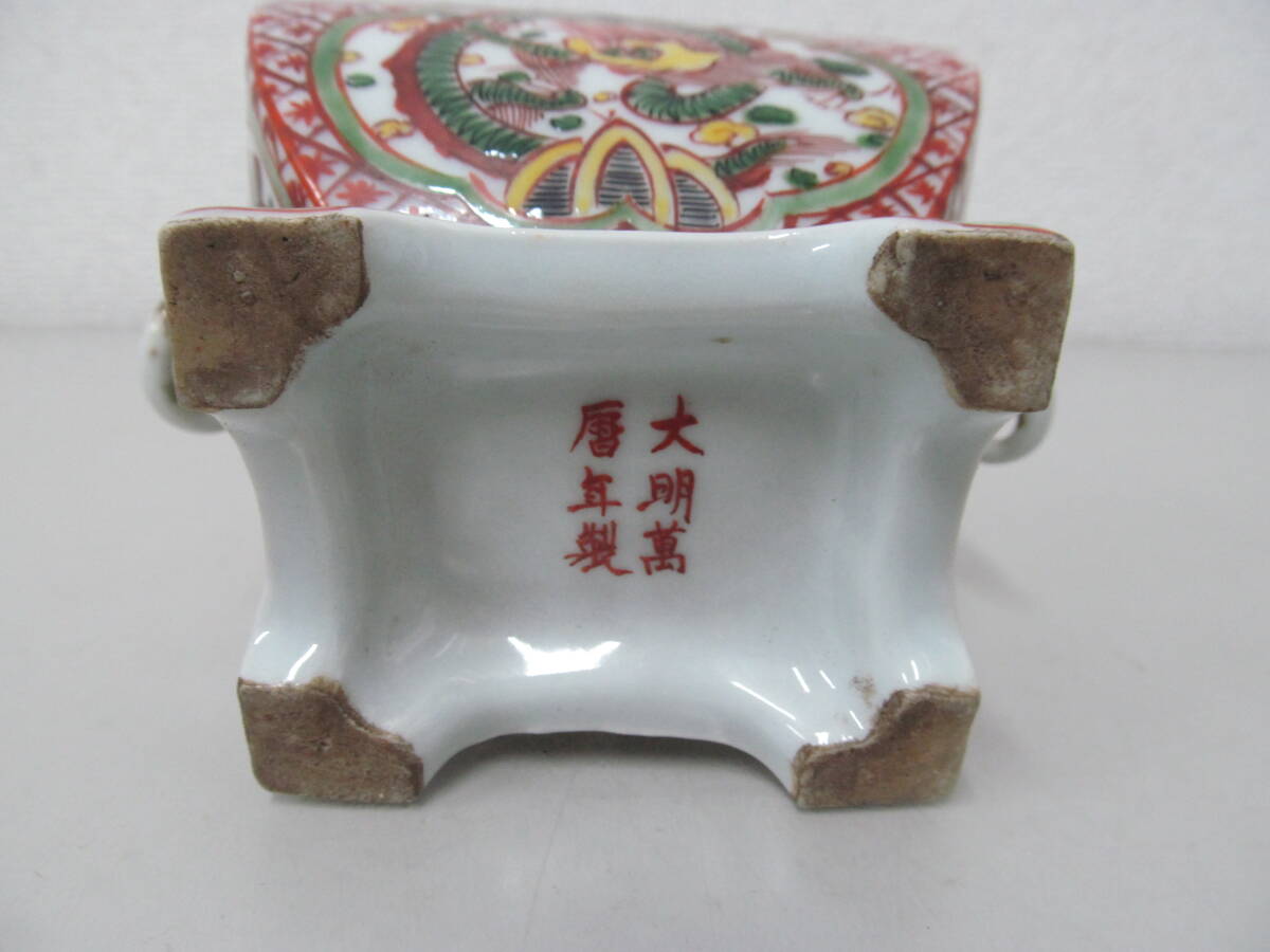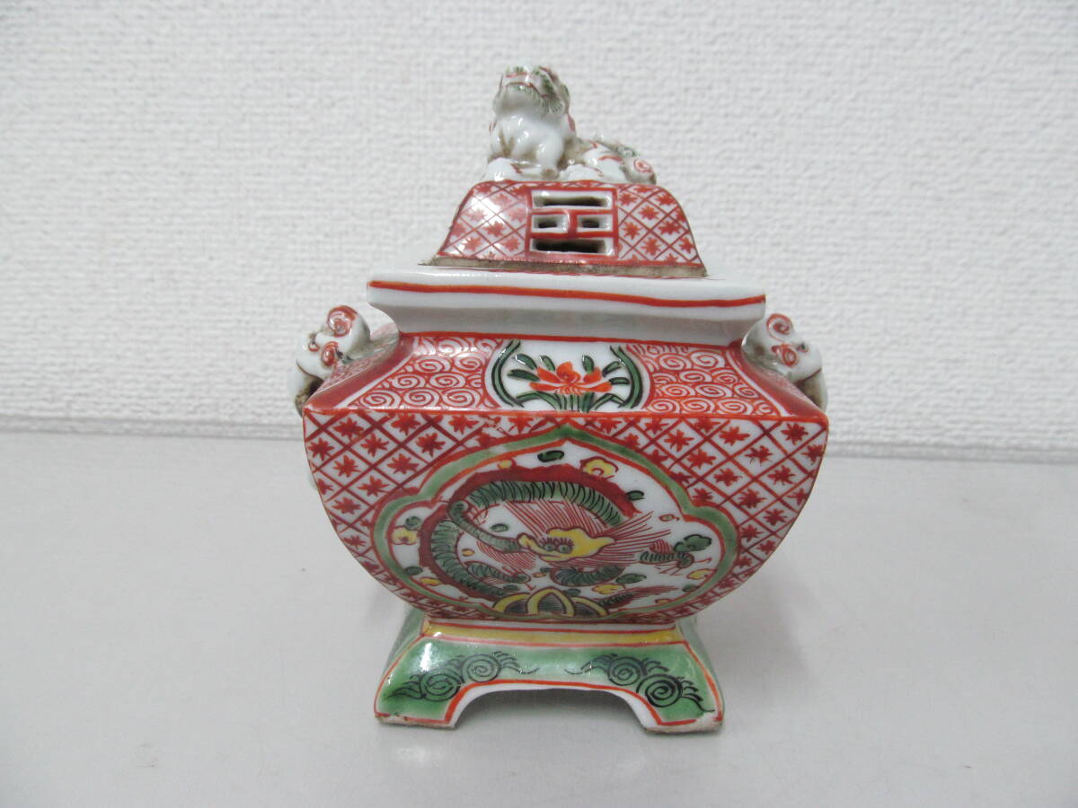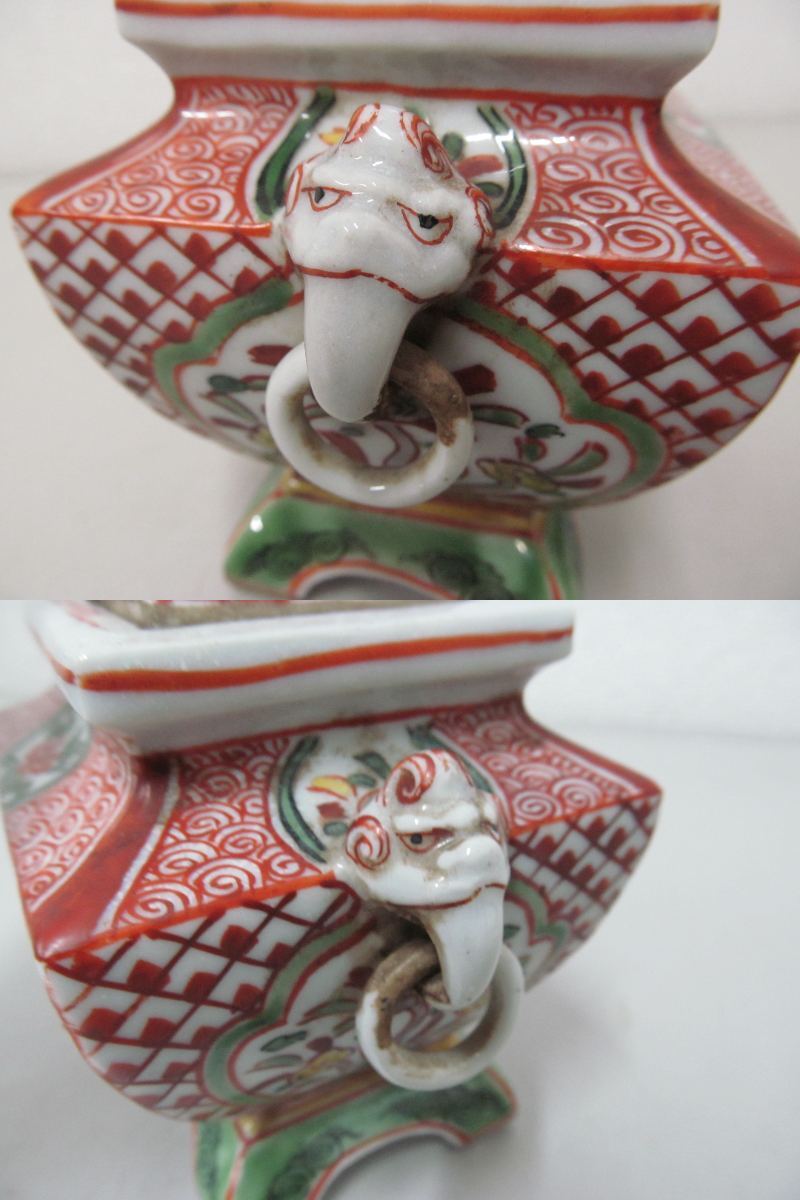 ◆時代 大明萬暦年製 赤絵 獅子摘 象耳 香炉◆ | |