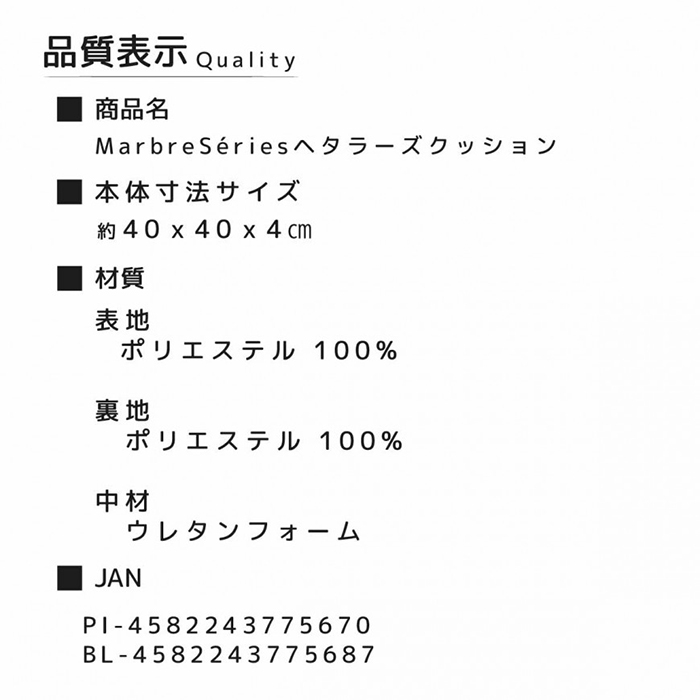 [表地]ポリエステル100% [裏地]ポリエステル100% [中材]ウレタンフォーム |