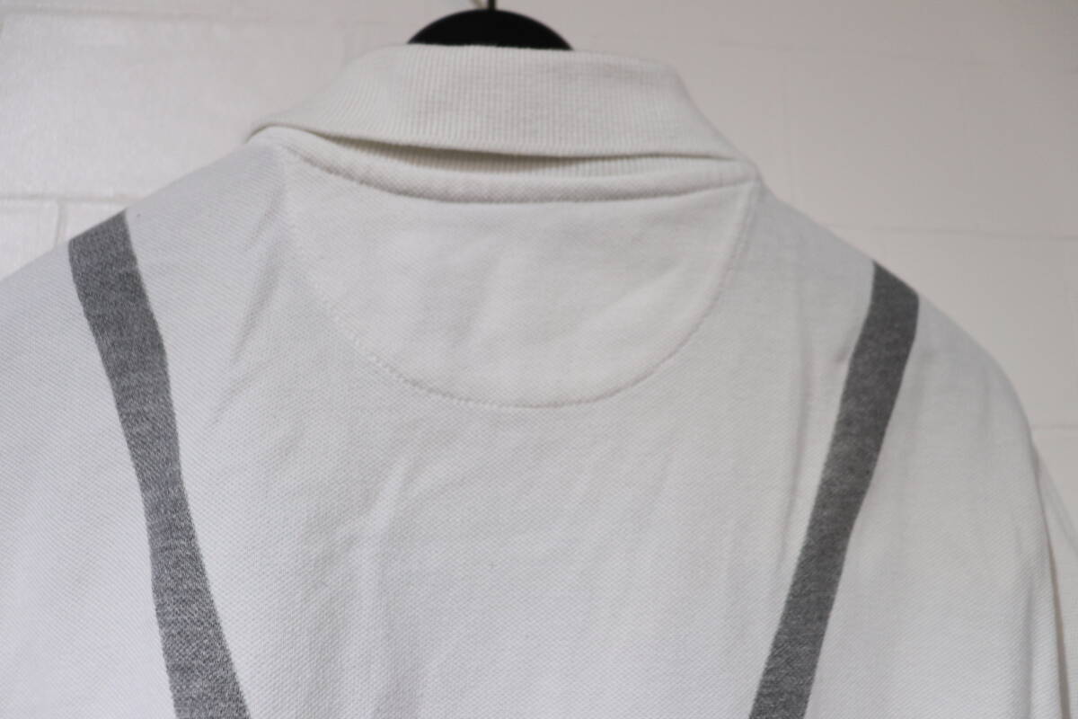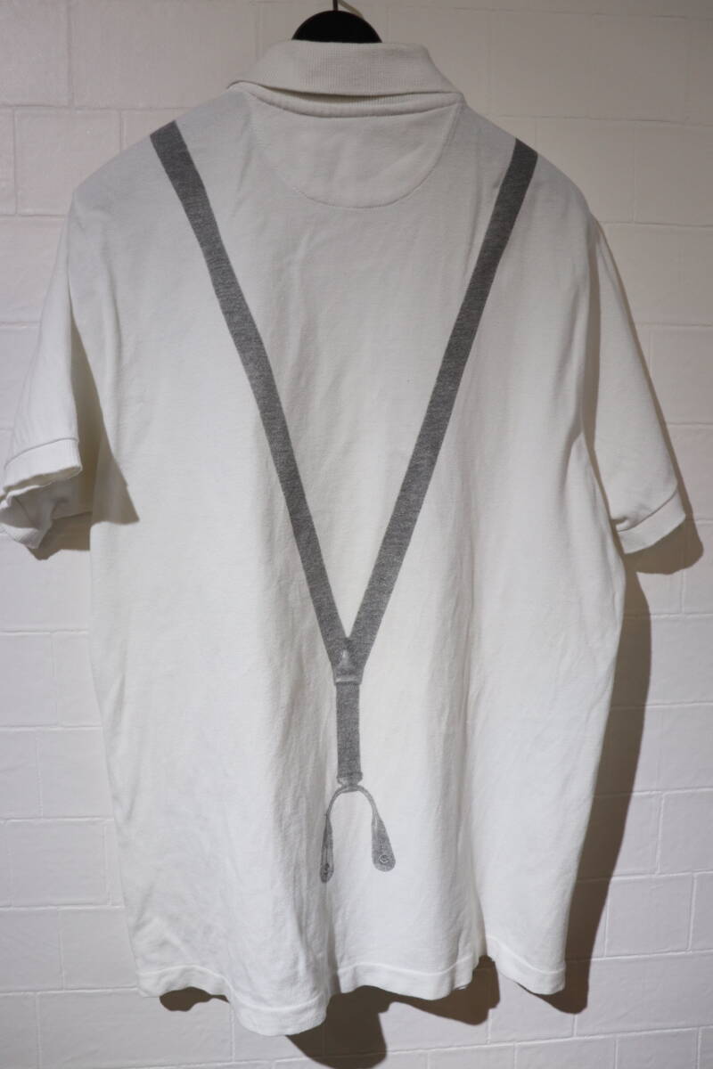 即決 NEIL BARRETT ニールバレット イタリア製 背面サスペンダー転写プリント 胸nb刺繍 半袖鹿の子ポロシャツメンズ L 白 ホワイト