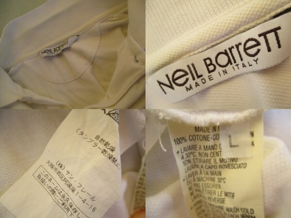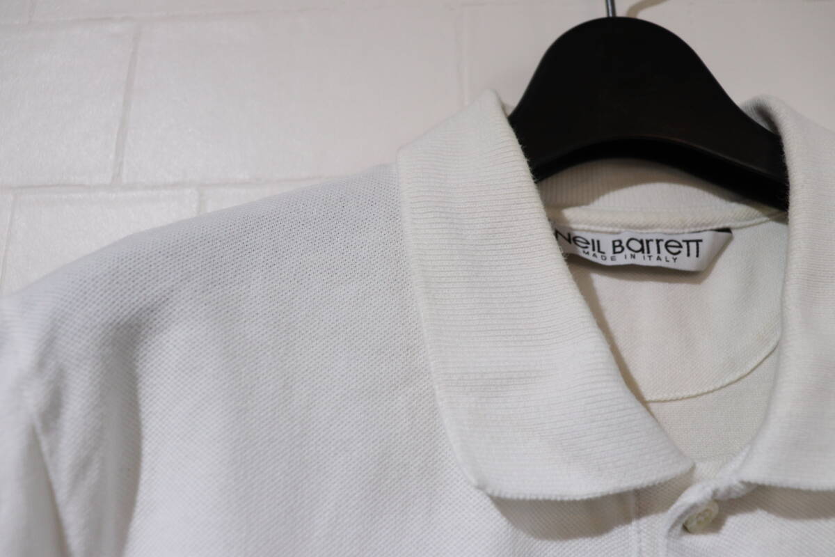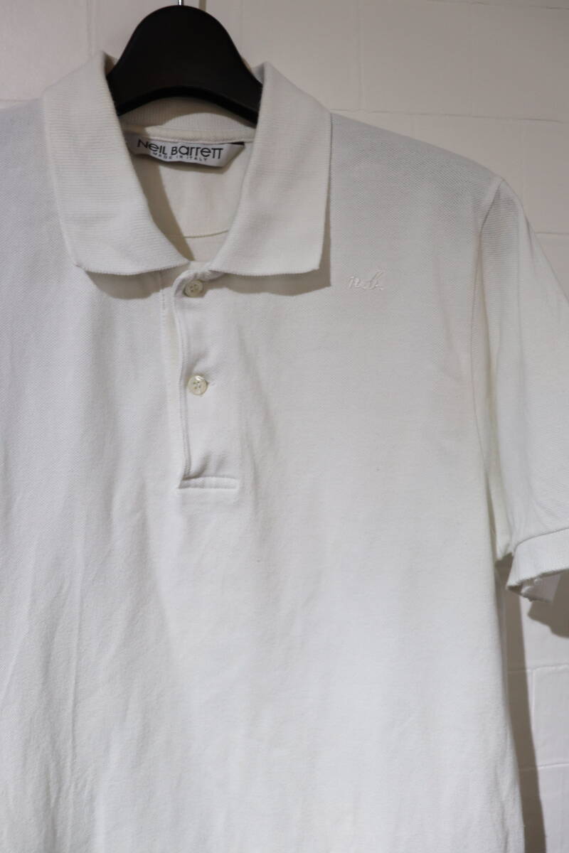 『送料レターパック対応可能   NEIL BARRETT   半袖胸刺繍ポロシャツ   メンズL   ホワイト』