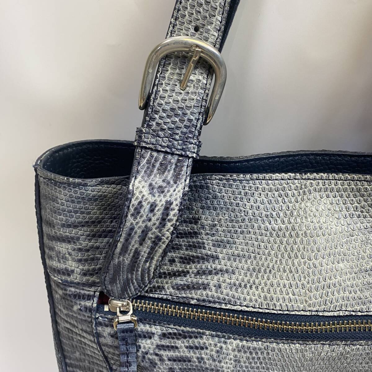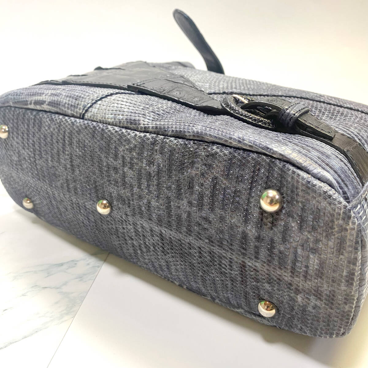 【希少】JRA エキゾチックレザー リザード トートバッグ 大容量 ネイビー 高級本革 10-IR-134A