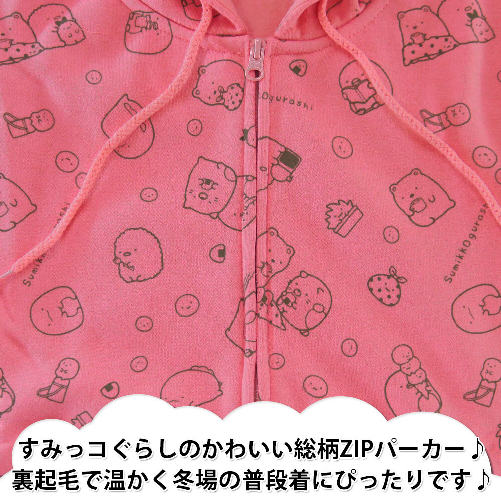 正規店仕入れの新品未使用品です 綿とポリエステル素材で、吸汗速乾に優れます すみっコぐらしのかわいい総柄ZIPパーカー 裏起毛で温かく冬場の普段着にぴったりです |
