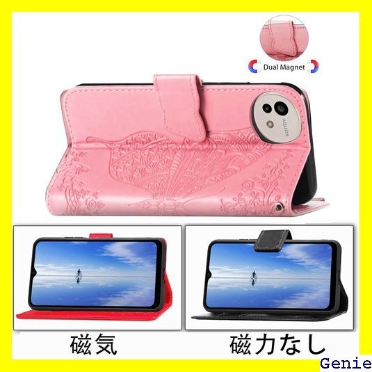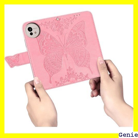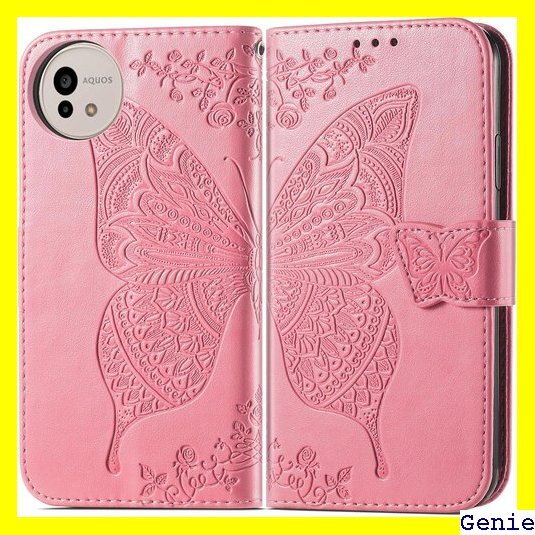 に適用するAquos Wish 4 SH-52E ケース 手帳型 ノートブック型携帯保護カバー多機能携帯ホルスター財布携帯ホルダーバンプパターンテクスチャ耐久性摩擦耐性携帯ケース男性と女性に適した多色オプション バタフライピンク 11