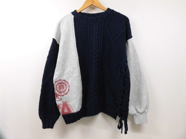 ■ブランド・商品名:niko and... ニコアンド ニット×スウェット 切替トップス ケーブルニット 裏起毛 袖リブ セーター ネイビー×グレー 紺 灰色 Mサイズ