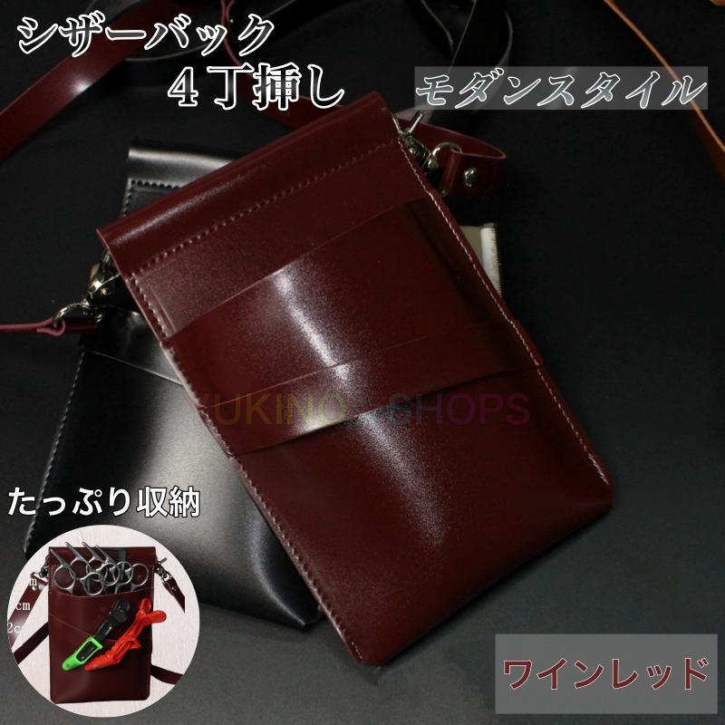シザーバック シンプル ワインレッド 4丁刺し シザーケース 美容師 理容師