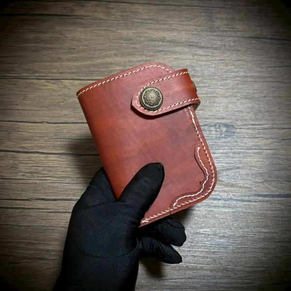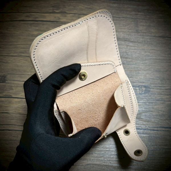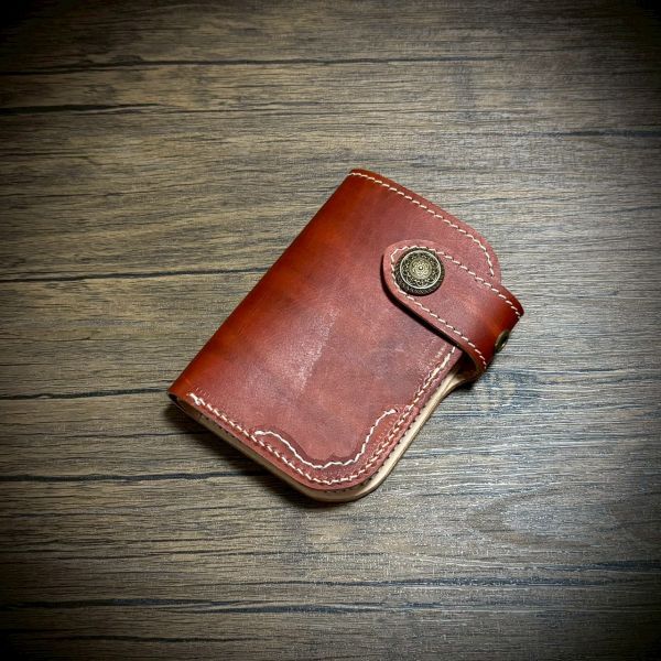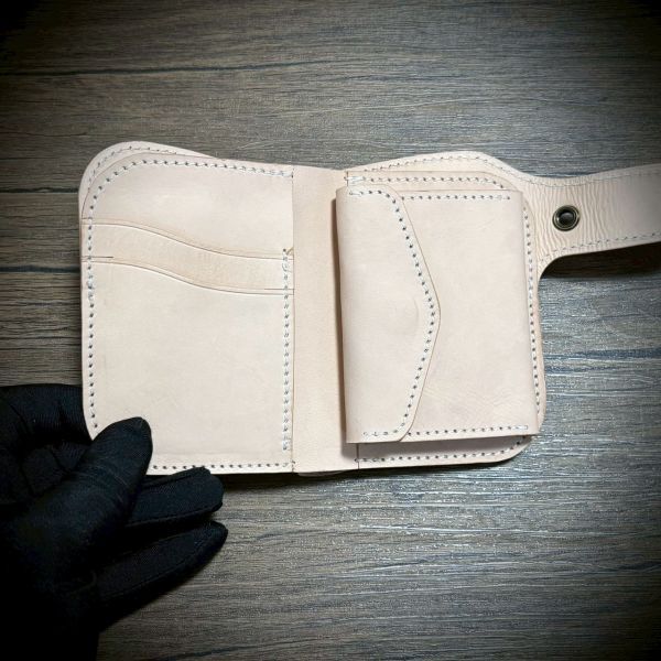 ヌメ革の小銭入れ付きのミドルウォレット。