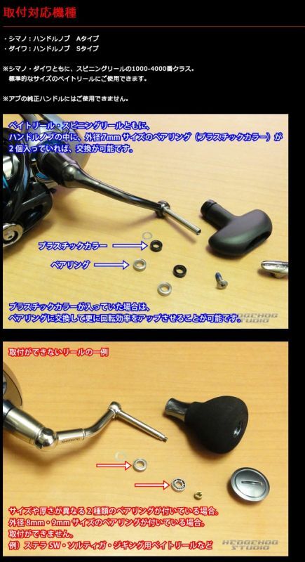 B-PROJECT(ブラックジュラコン・ノブカラー・プロジェクト)と題し、小型のラウンド薄肉中空チタンノブPT35/EP37/EP41の軸の形状をブラックジュラコン・ノブカラーでノブ側は太くリール側を細くしています。