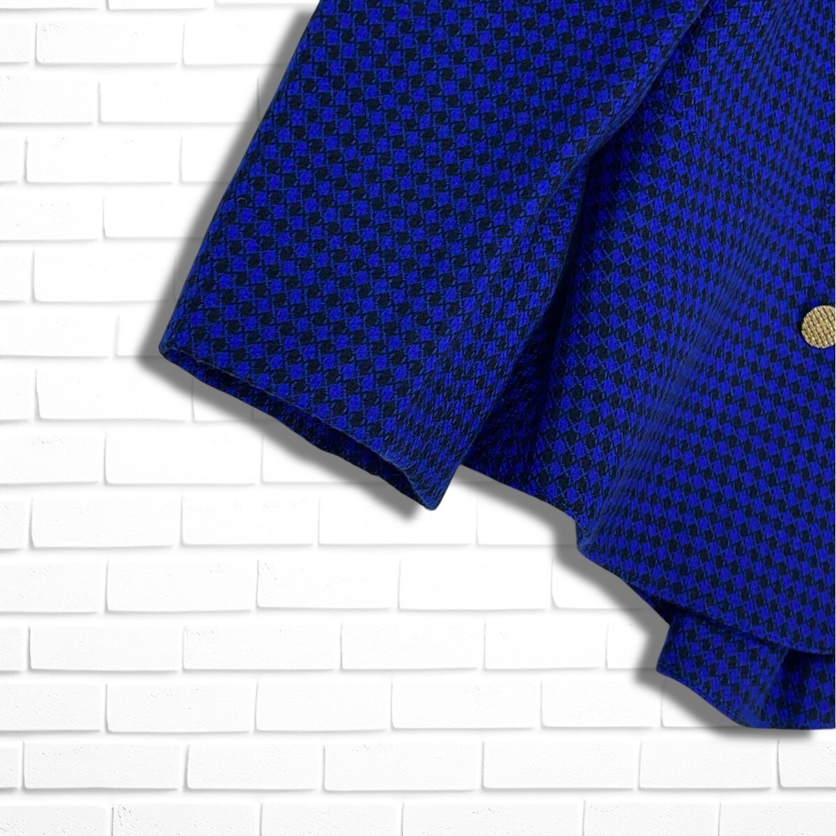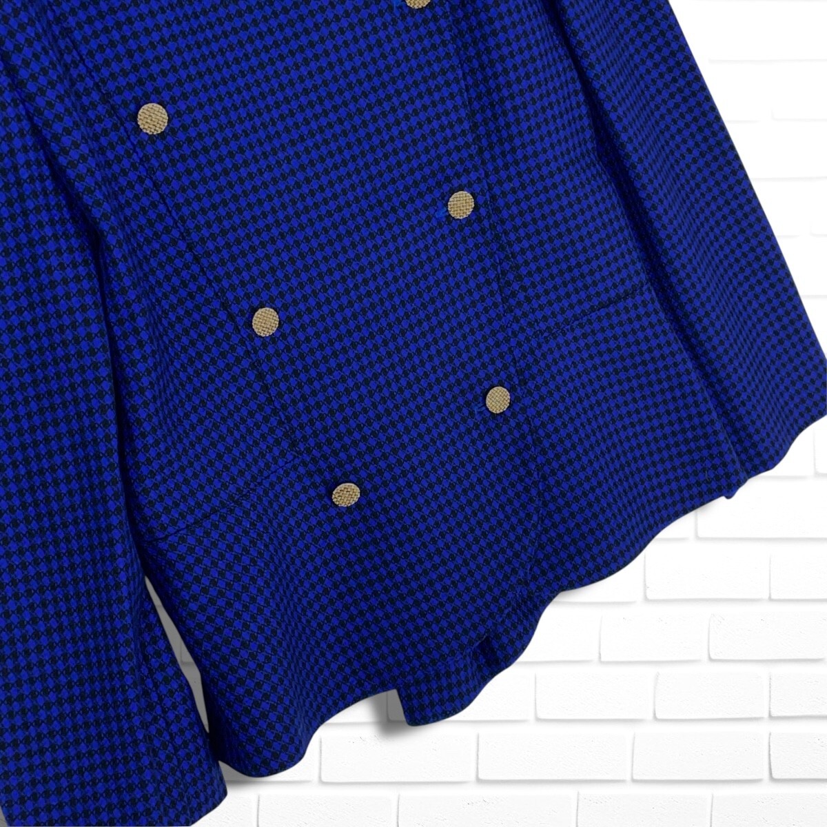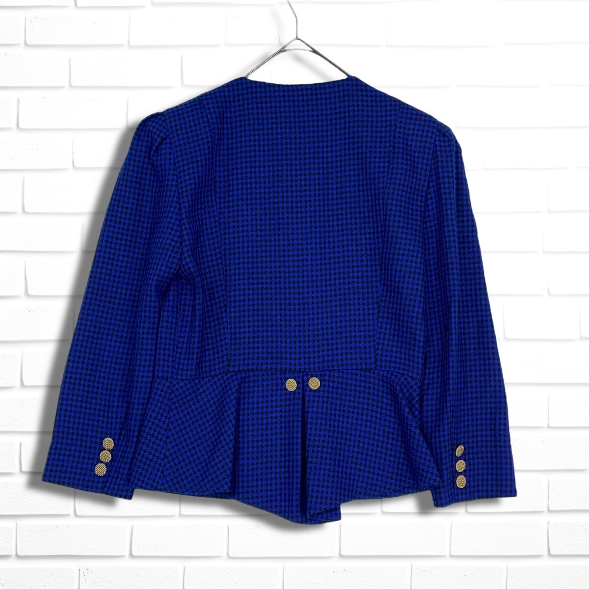 ◆美品◆ Louis Feraud ルイフェロー ウール 総柄 金ボタン レトロ ノーカラー ジャケット 黒 青 レディース 送料無料 3965D◇