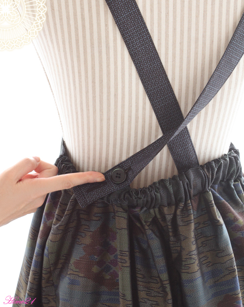 肩紐は、後ろ側のボタンホール(2ヶ所)で調整してくださいね。