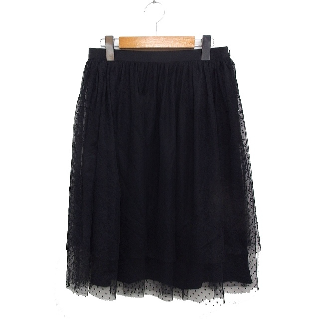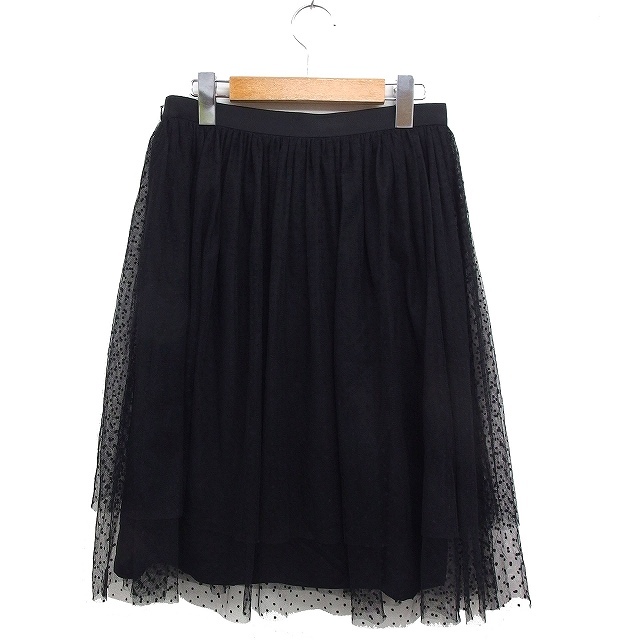 ブルックスブラザーズ BROOKS BROTHERS ドット チュール ギャザー スカート ひざ丈 2 ブラック 黒 /FT37 レディース