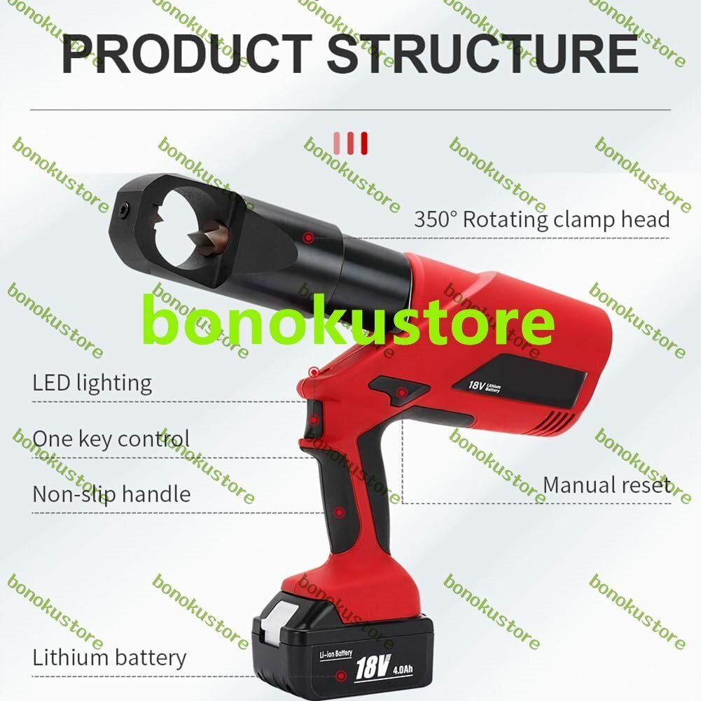 電動油圧ナットスプリッター 120KN ネジカッター 350 度回転可能なセパレーター M10-M24 のナット用 EC-2432Aパラメータモデル: EC-2432A出力: 120KNストローク: 32mmブレーキ範囲: M 14-M24バッテリー電圧: 18Vバッテリー容量:3.0Ah充電時間: 2 時間重量: 11KGアクセサリー:ナットスプリッターバッテリー×2充電器×1