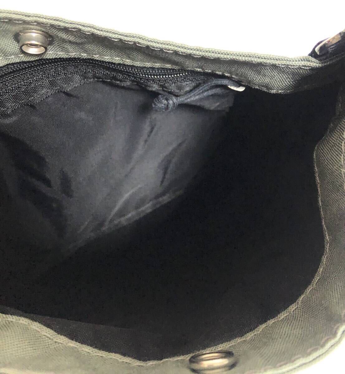 メインポケットはボタン留め、内部にはジップ付きの小物入れがあります。