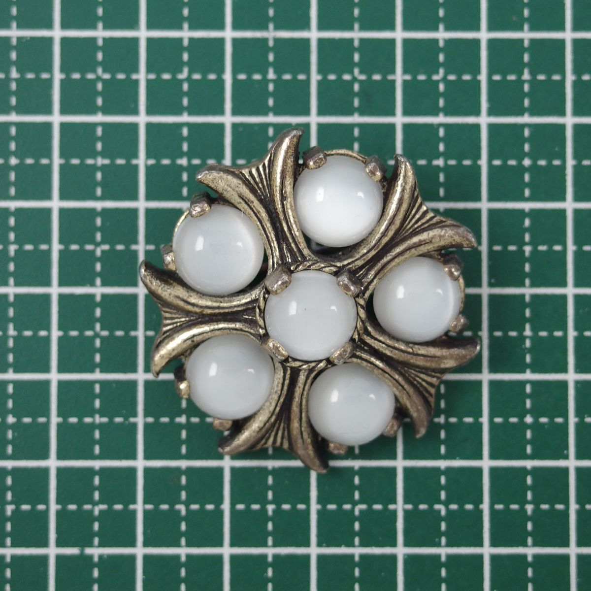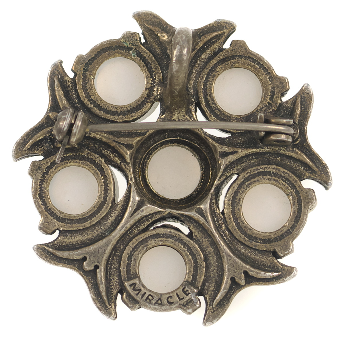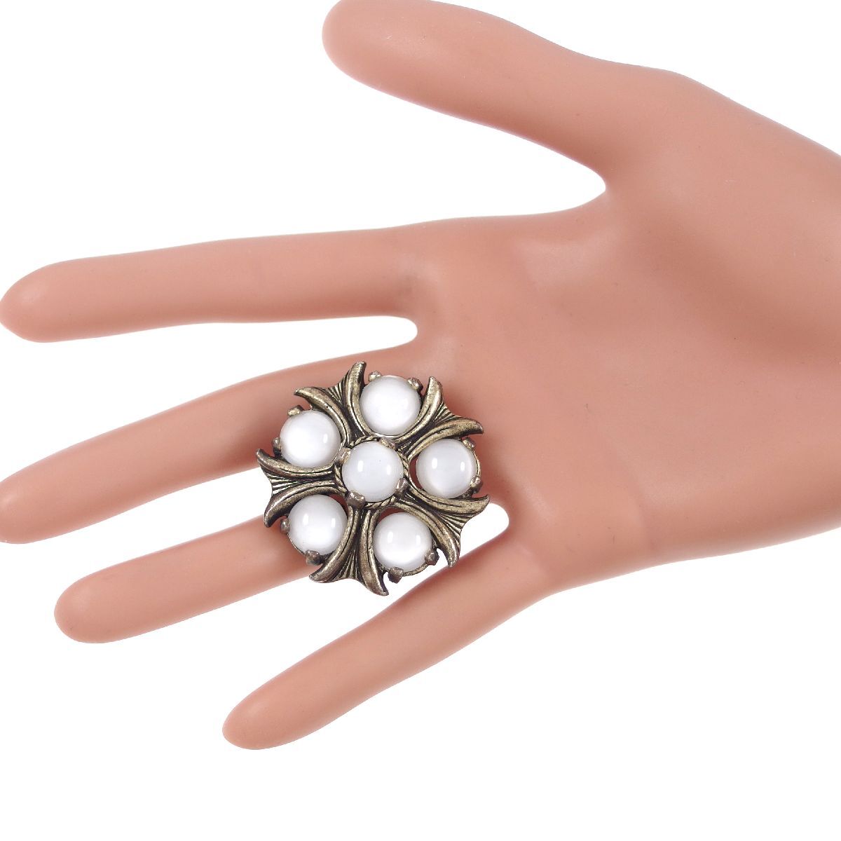 UK3739◆【MIRACLE】◆ フラワーモチーフ ホワイト系カボションストーン ムーングロウ ケルト 英国 ミラクル ◆ ヴィンテージブローチ ◆