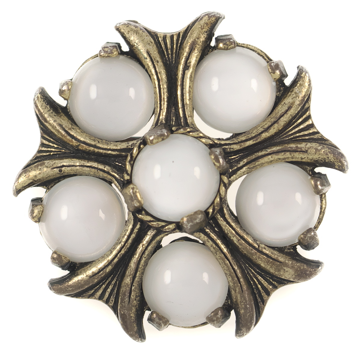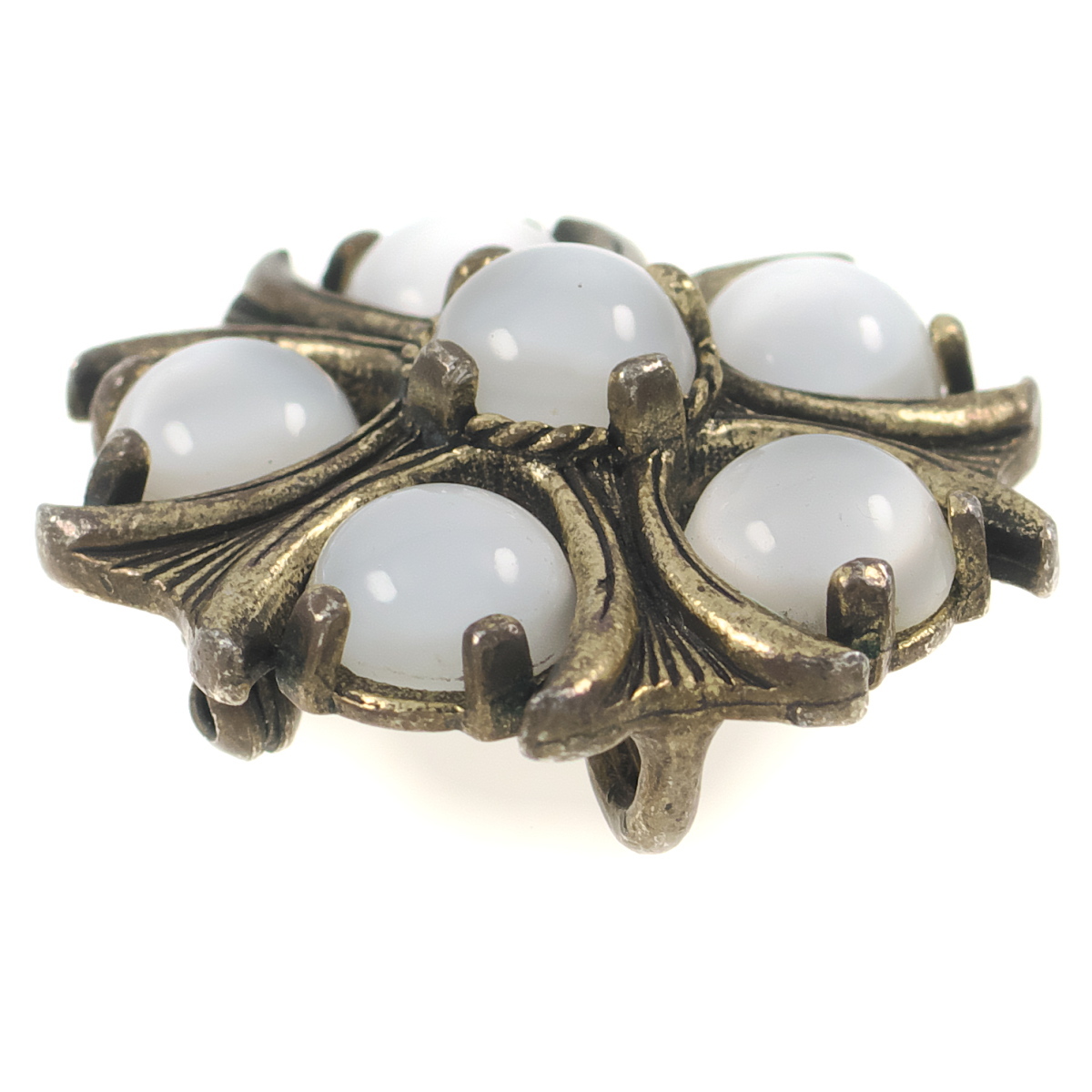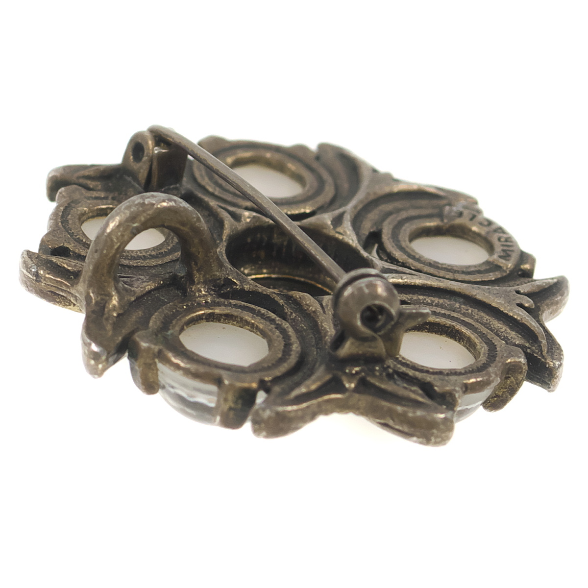 UK3739◆【MIRACLE】◆ フラワーモチーフ ホワイト系カボションストーン ムーングロウ ケルト 英国 ミラクル ◆ ヴィンテージブローチ ◆