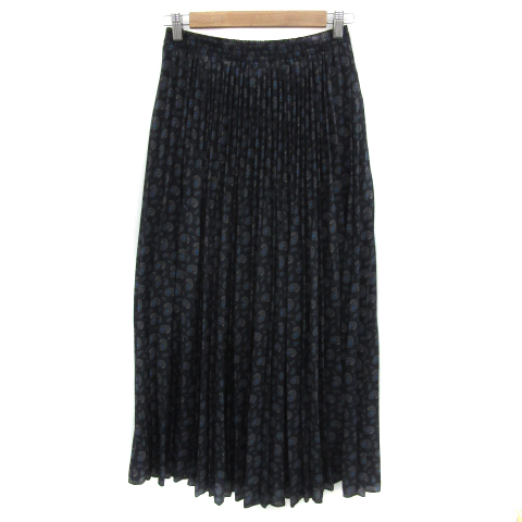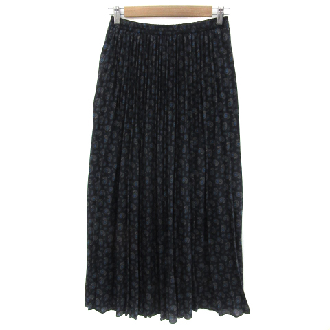 ニコアンド Niko and.. プリーツスカート マキシ丈 ロング丈 ペイズリー柄 マルチカラー 黒 ブラック /YS3 レディース