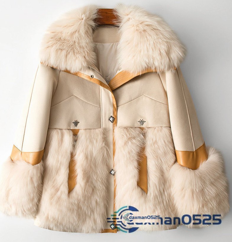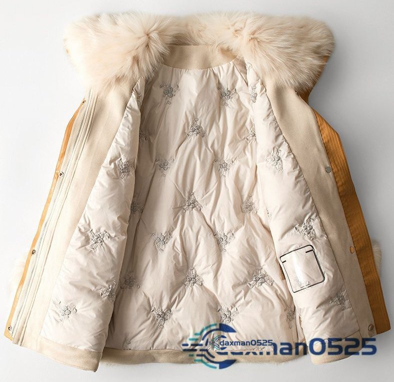 最高級フォックスファー付き★ウォッシュレザー生地のダウンコート毛皮ファー