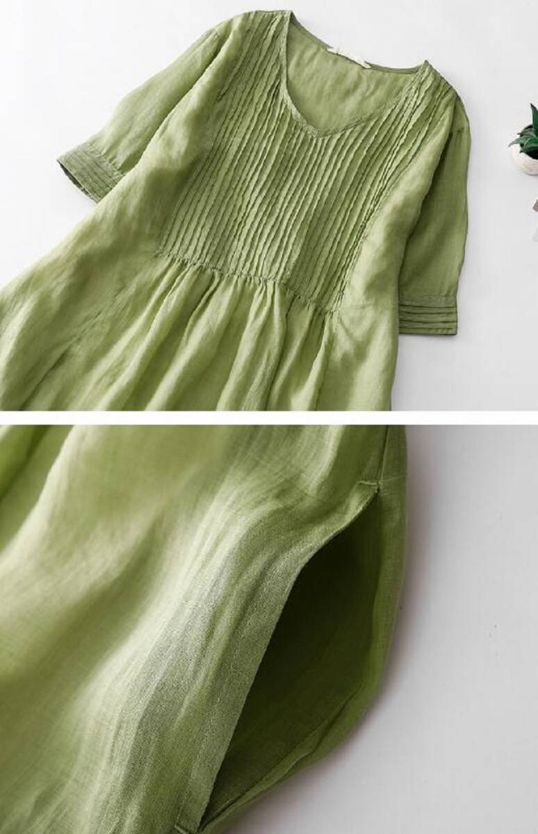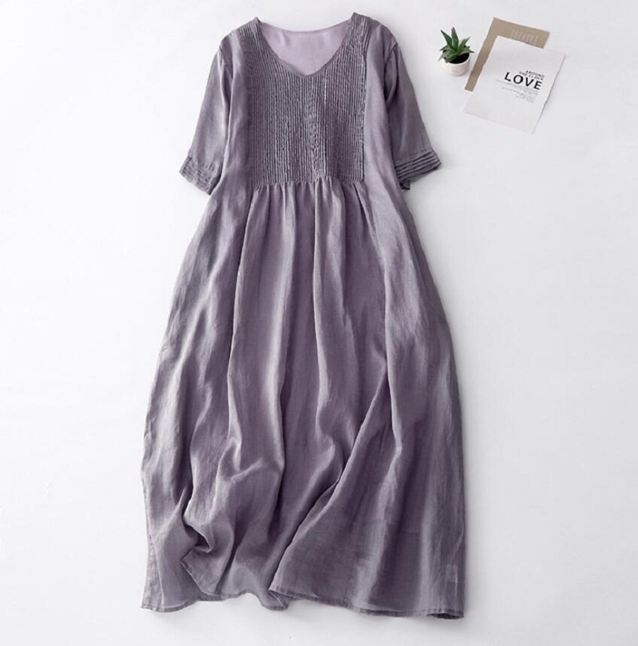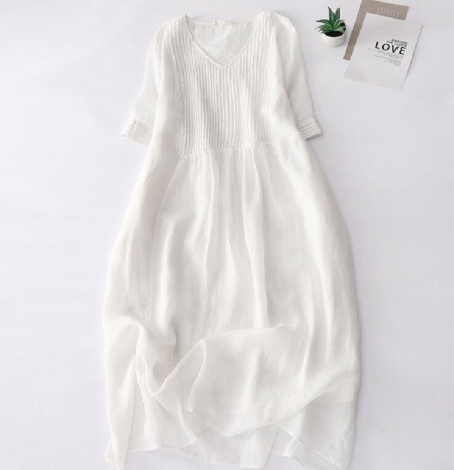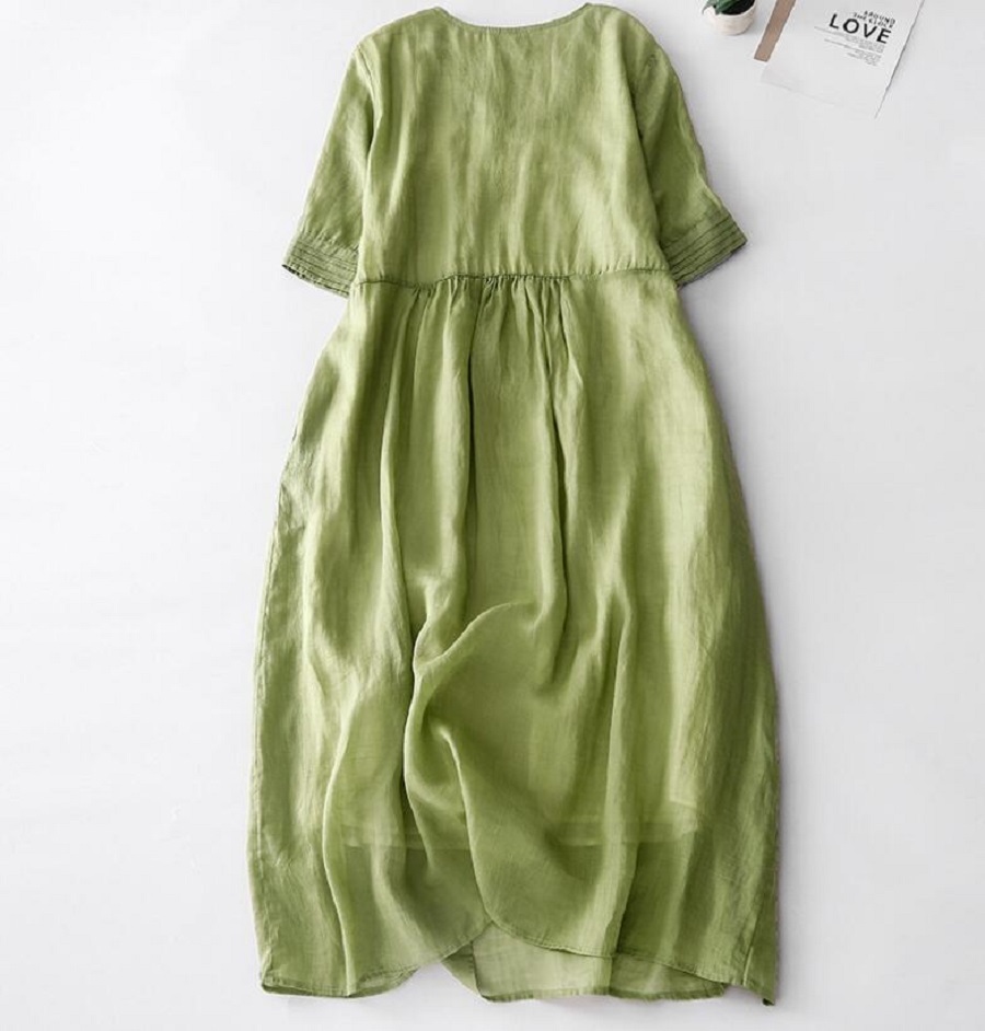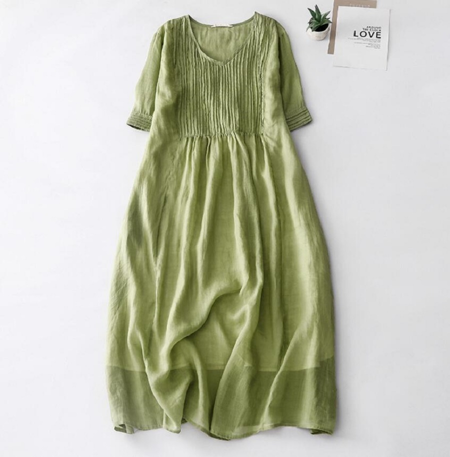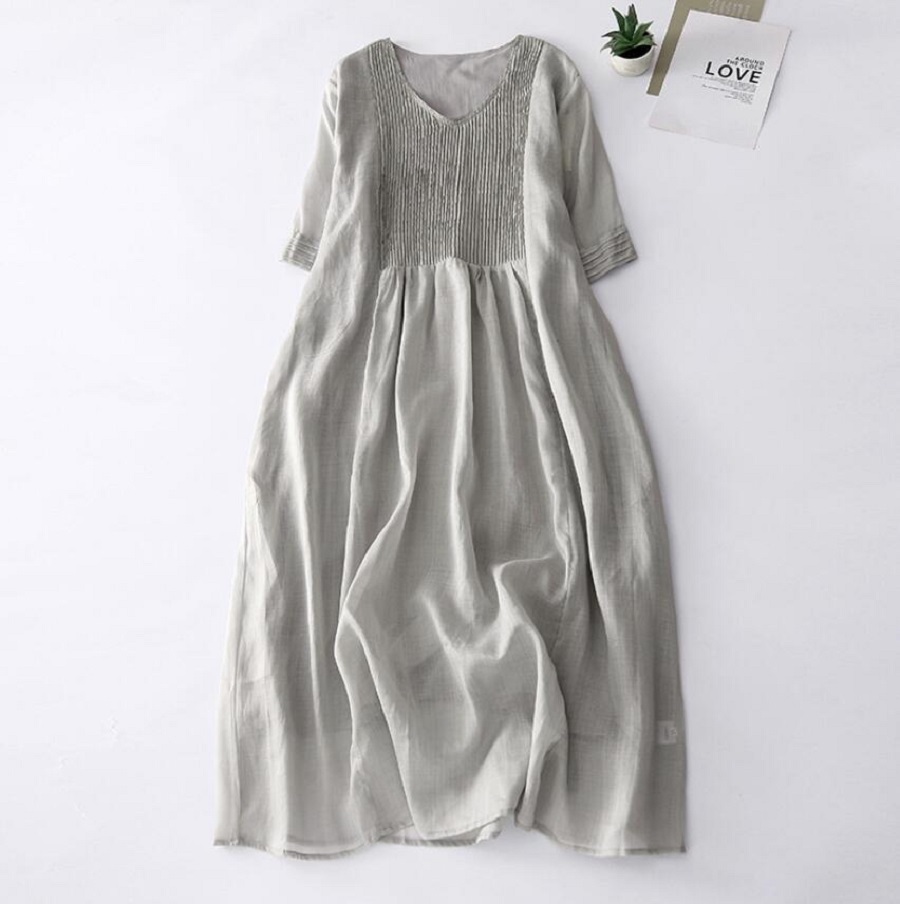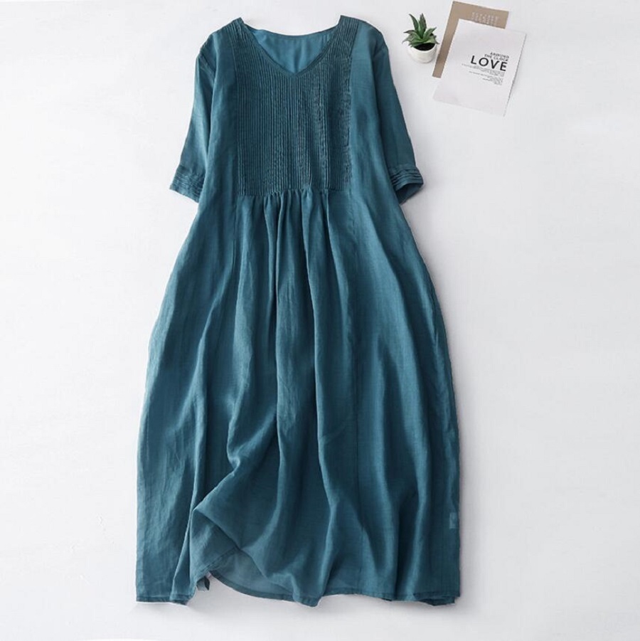 同梱1万円送料無料■M-2XL■夏季 ワンピース Vネックレディース マキシ丈 体型カバー可愛い通勤着ロングワンピースゆったり★レイクブルー