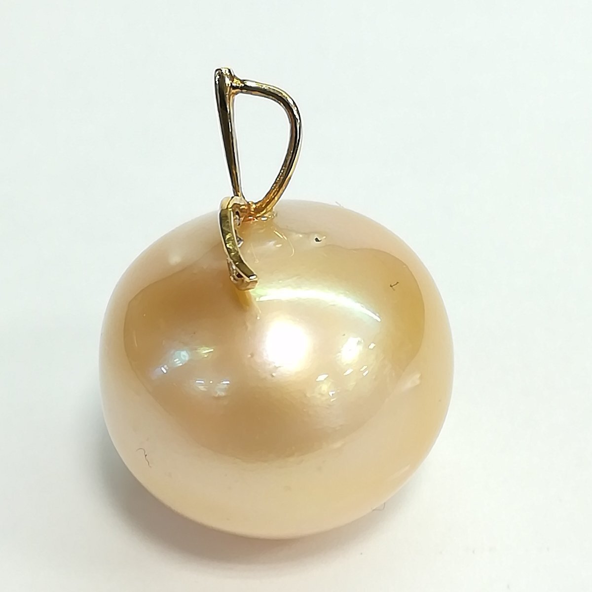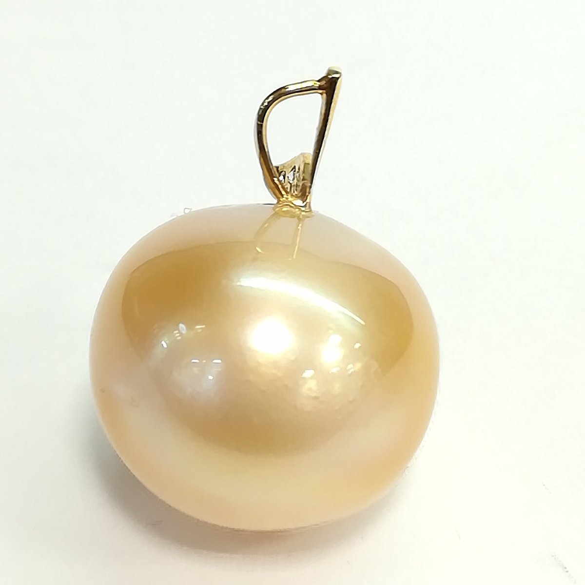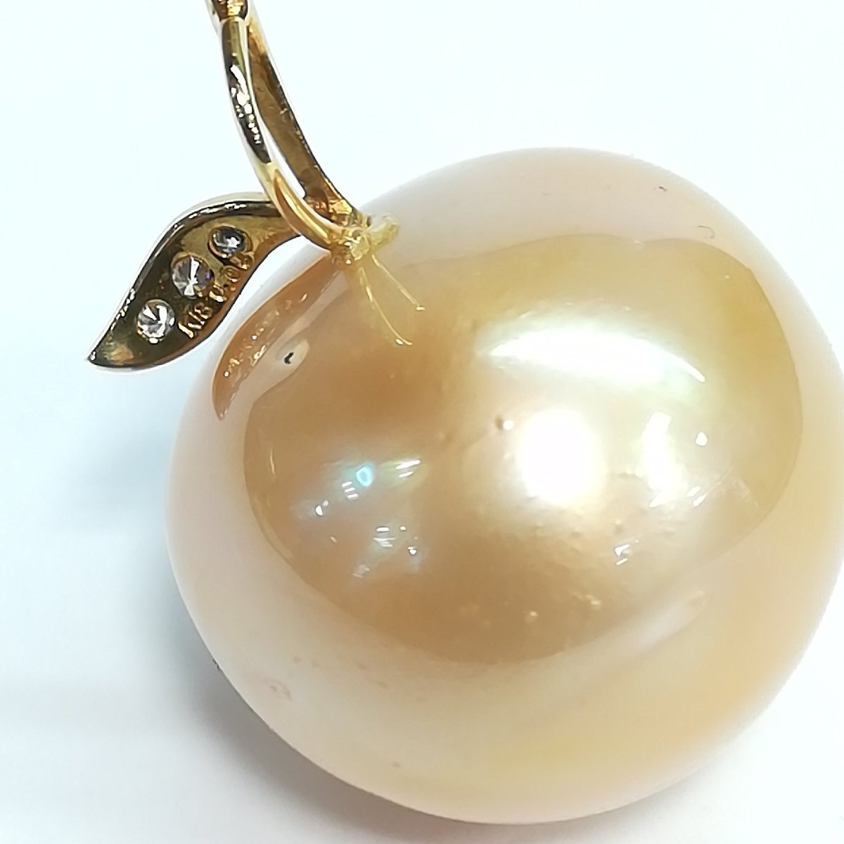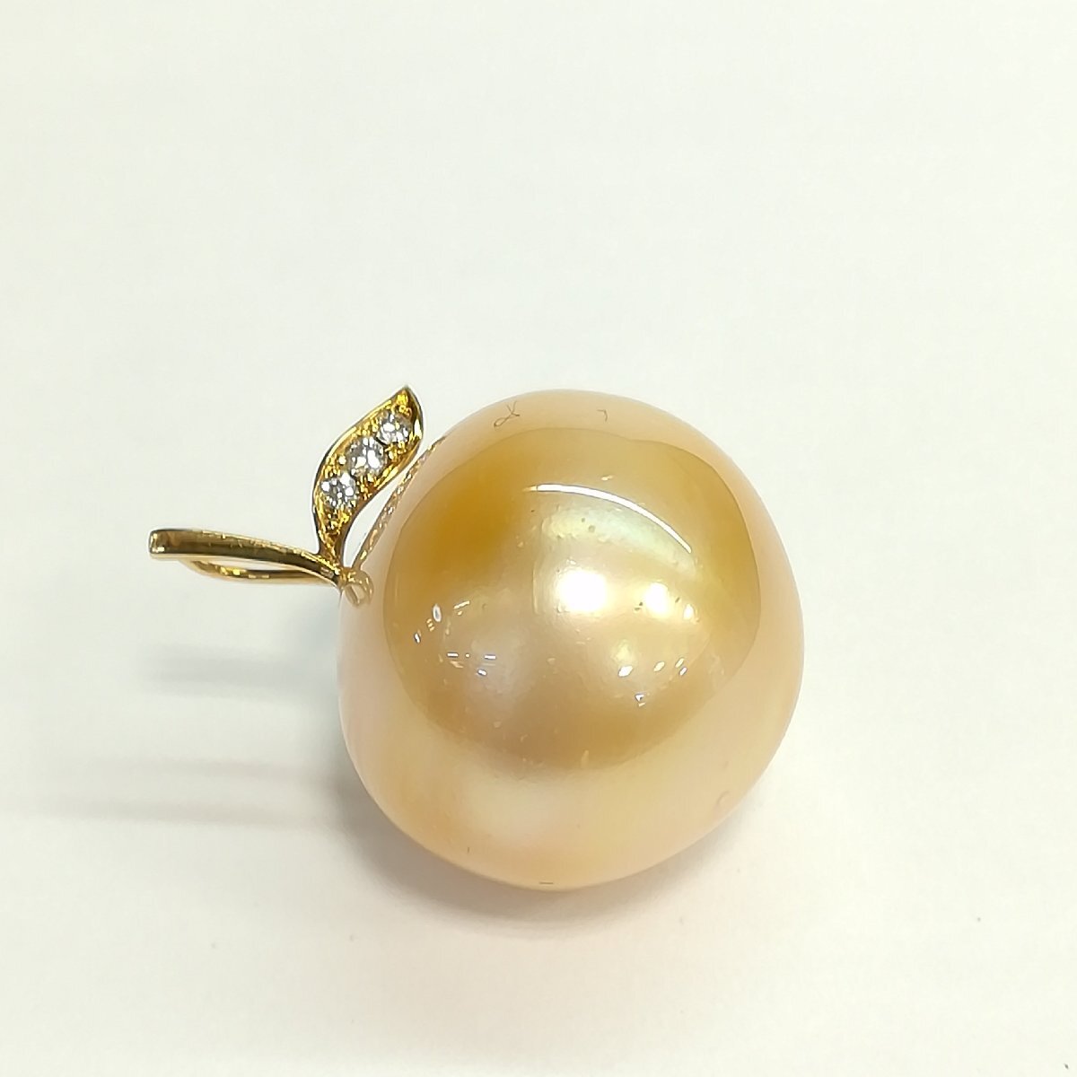 質屋出品【ペンダントトップ】南洋真珠 19mm ダイヤ ペンダントトップ りんご風モチーフ 中古 南洋真珠 18.9~19.4mm、ダイヤモンド0.05ct、9.9g 【サイズ】 約H25mm(チェーンホール約3mmx5mm) 【付属品】 鑑別書 【商品状態】 中古です。カジュアルな真珠でもともとのキズなど肉眼で確認でき表面は粗いです。ジュエリーというよりアクセサリー感覚です。大振りなのが特徴です。 【商品説明】 ペンダントトップ ※店頭にて展示販売を行っている為、記載に無い細かなキズ、汚れが見受けられる場合がございます。 ご不明な点がございましたらご連絡(お問合せフォーム、お電話)頂きますようお願いいたします。 定休日及び臨時休業日はご返信できないです。 TE-120503 | ||
