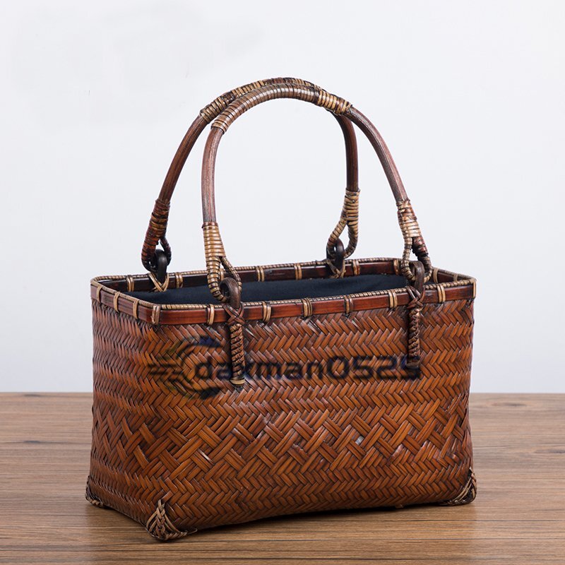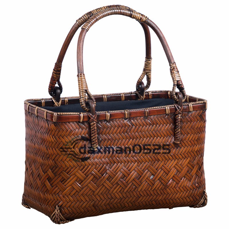 人気新品 可愛い新品 自然竹編み上げカゴバック  手作りバスケット ナチュラル買い物カゴ 収納バッグ  花火着物
