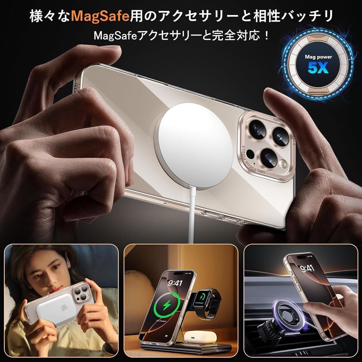 【対応機種】:本製品はiPhone 16 Pro Max(三眼カメラ、6.9インチ )専用に設計されています、他のモデルには対応しておりません。ワイヤレス充電やモバイルバッテリーなど全てのMagSafe用アクセサリーにもばっちり対応しています。