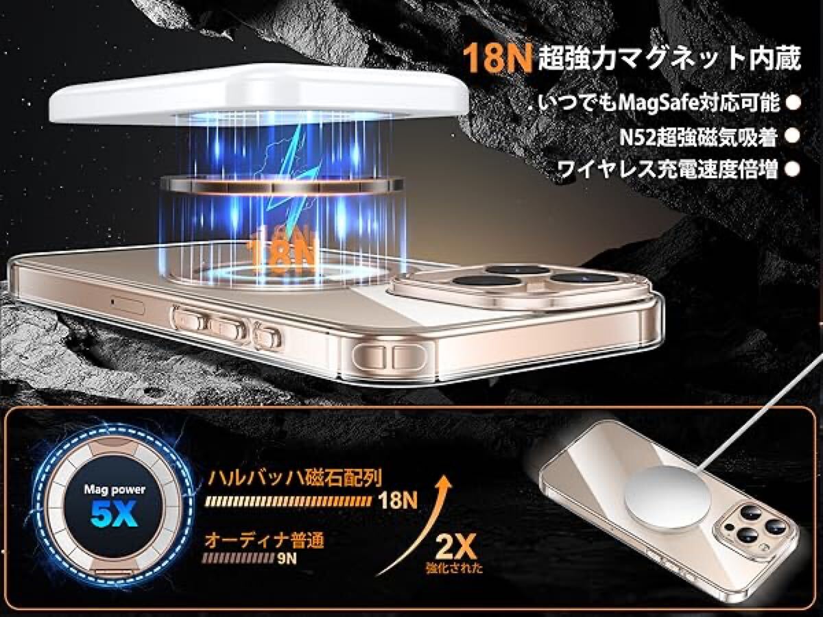【MagSafe対応・磁力アップグレード】:強力なN52磁石を搭載しており、磁石吸着力は従来より10倍高め、ケースを装着したまま高速ワイヤレス充電が可能です、
