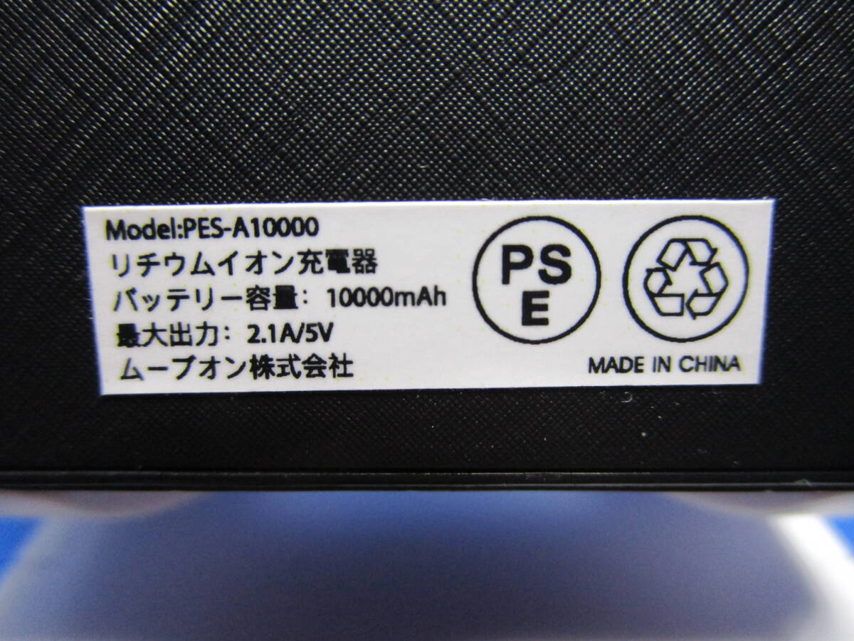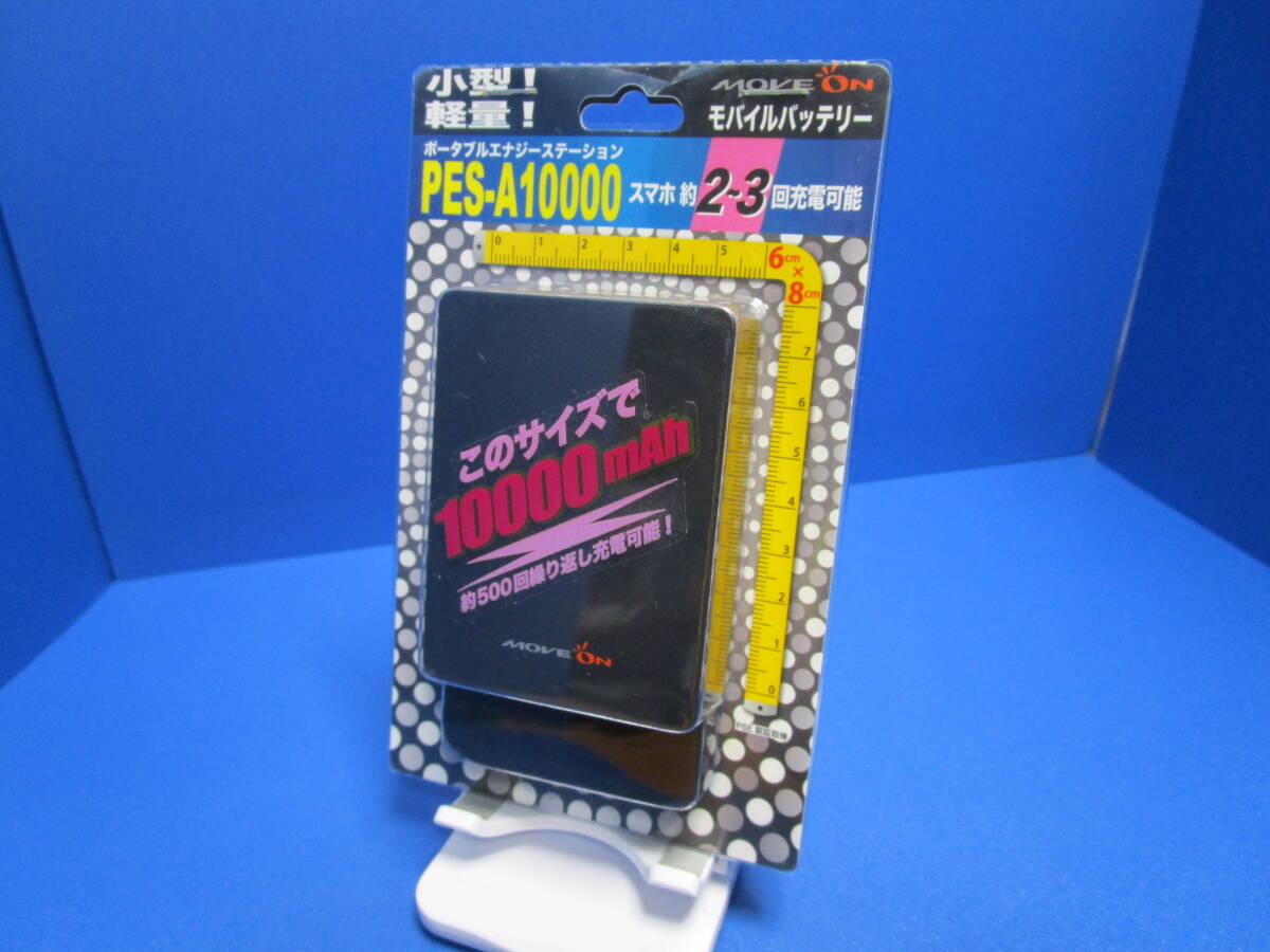 小型軽量 10,000mAh モバイルバッテリー 2.1A(最大) コンパクト モバイルバッテリー PSE認証 ブラック ムーブオン PES-A10000 ★t