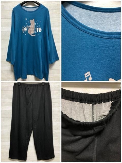 猫プリントルームウエア上下セット