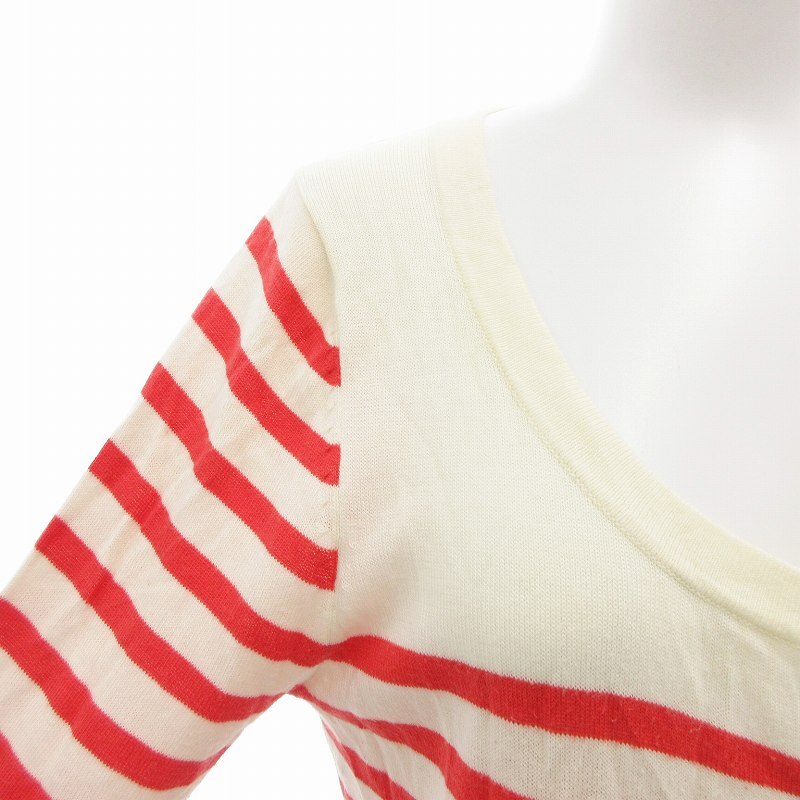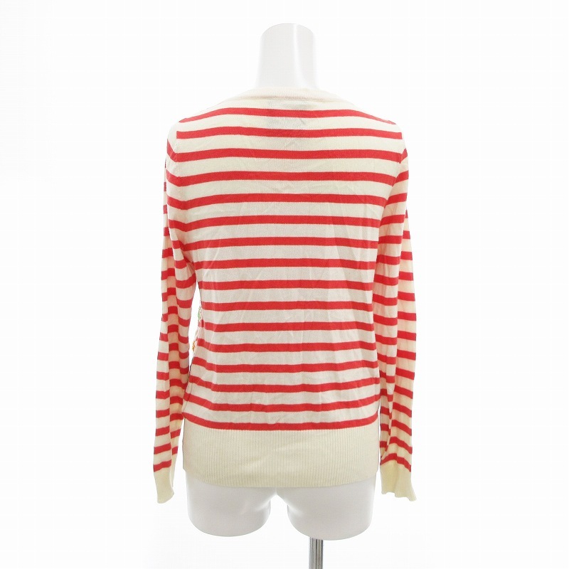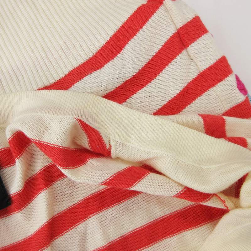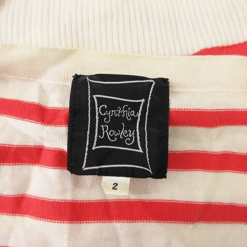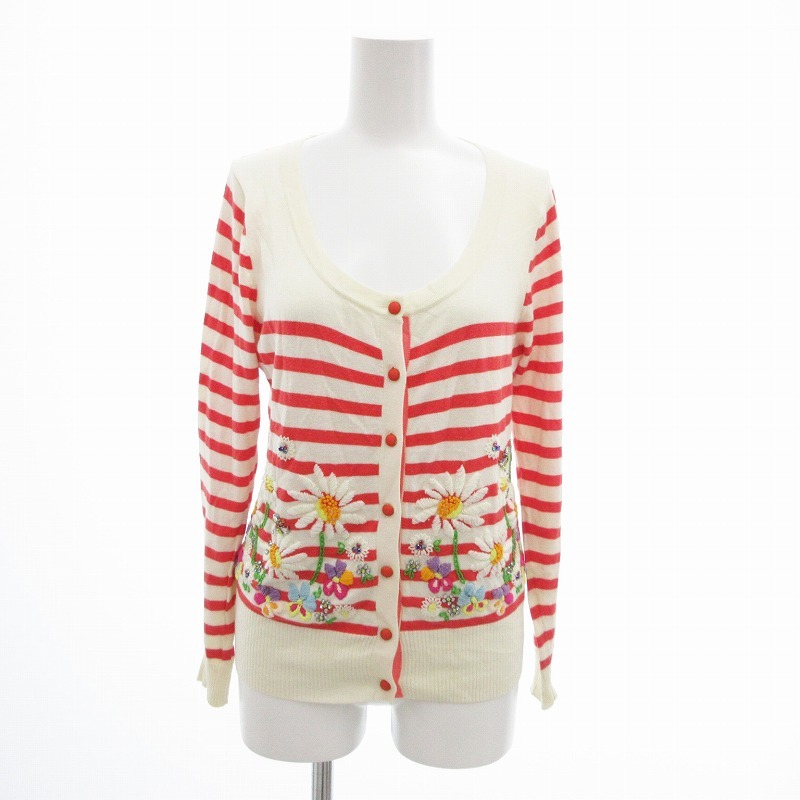 シンシアローリー CYNTHIA ROWLEY ニット カーディガン ボーダー 花柄 刺繍 ビジュー装飾 長袖 2 白 赤 マルチカラー