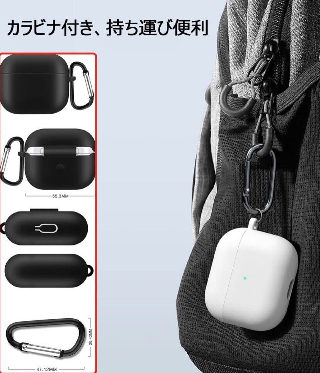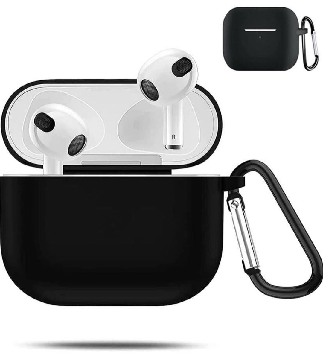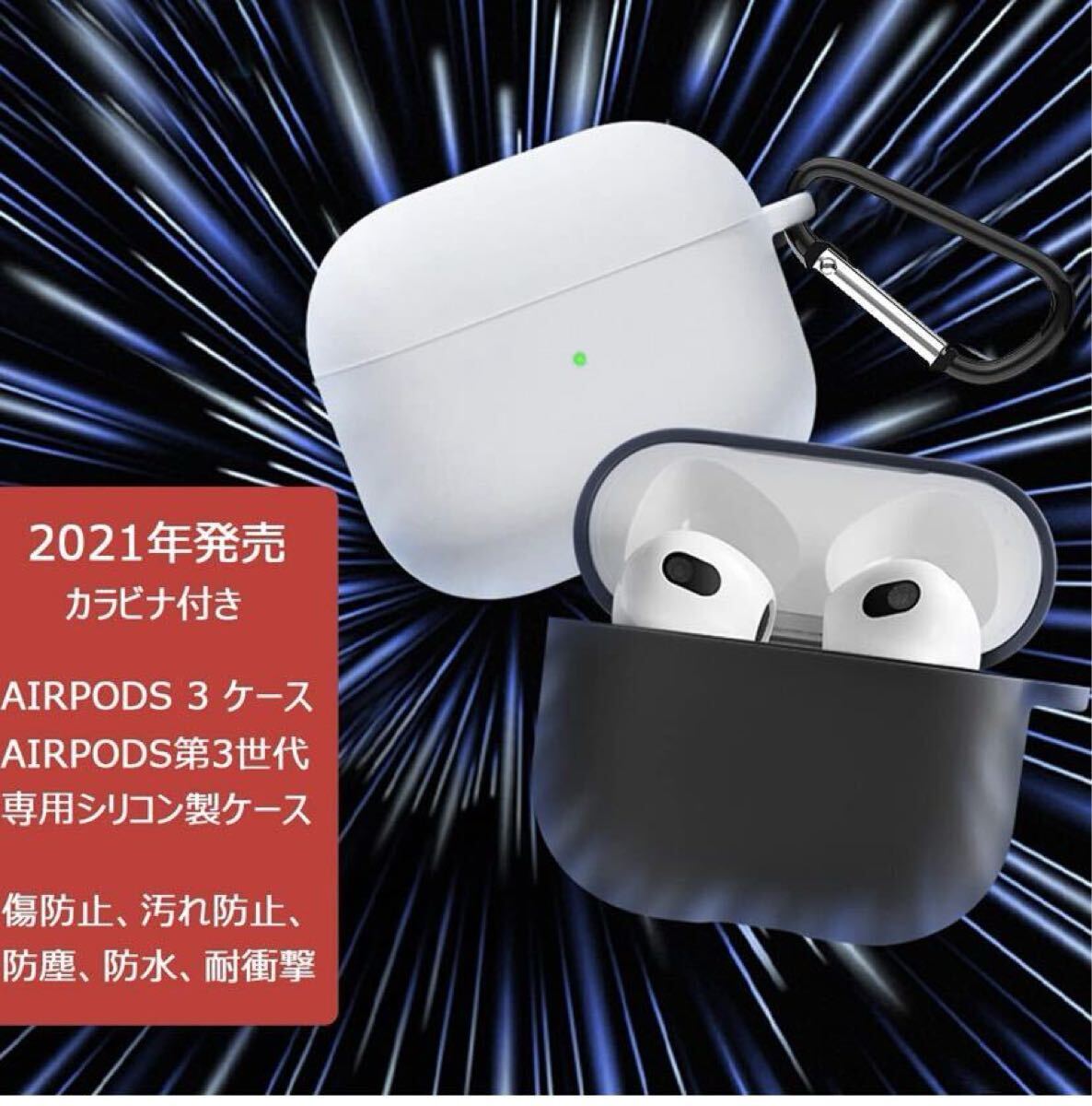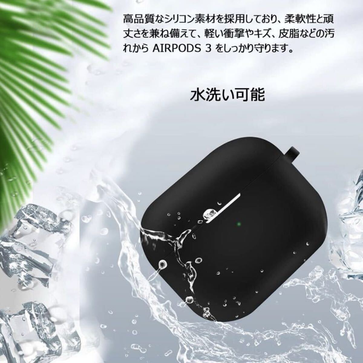 For AirPods 3ケース 充電便利 装着したまま 傷つきにくいシリコン カバー防水 防塵 軽量 キーチェーン付き ワイヤレス充電対応(ブラック)
