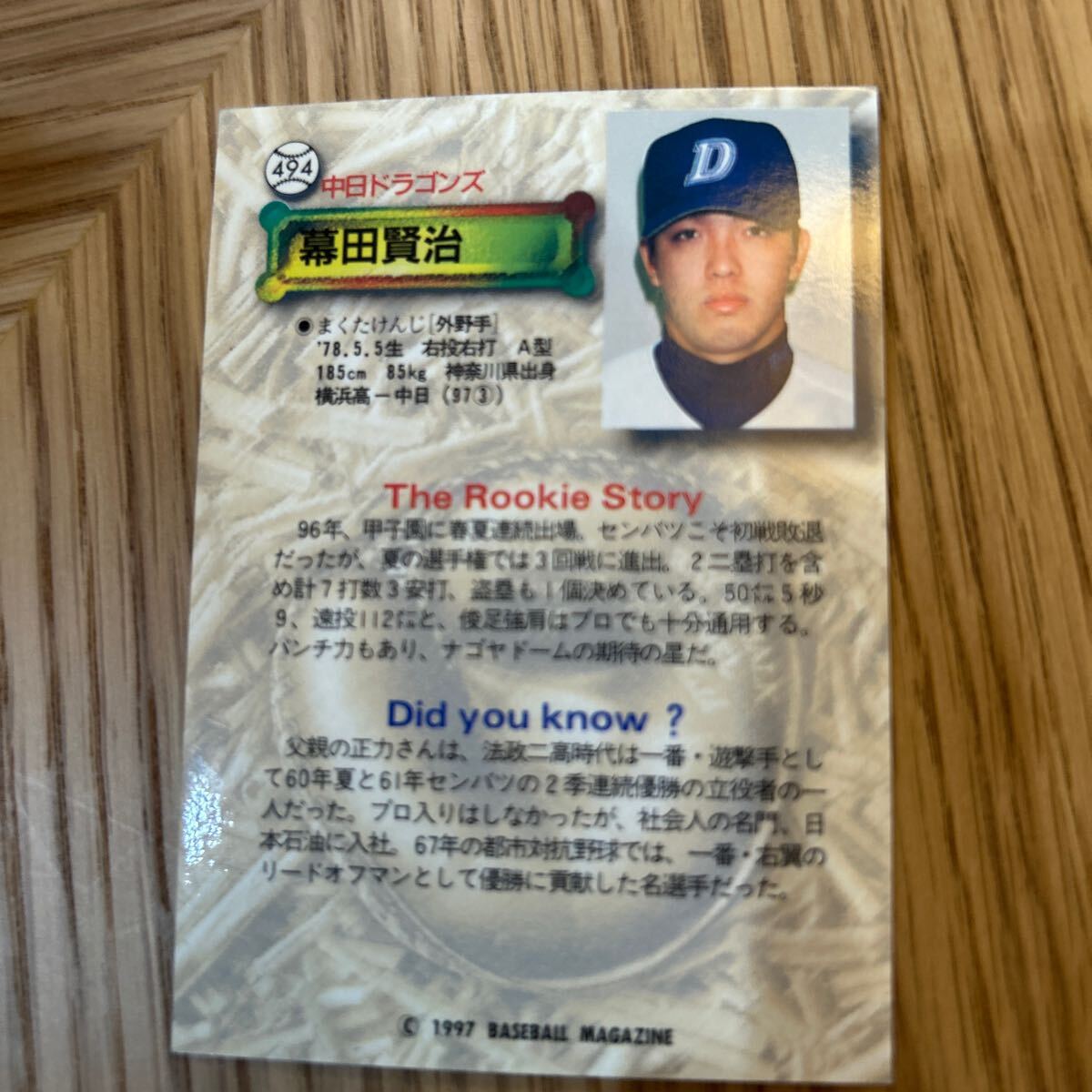 1997BBM 494 幕田賢治 ルーキーカードRC 中日ドラゴンズ