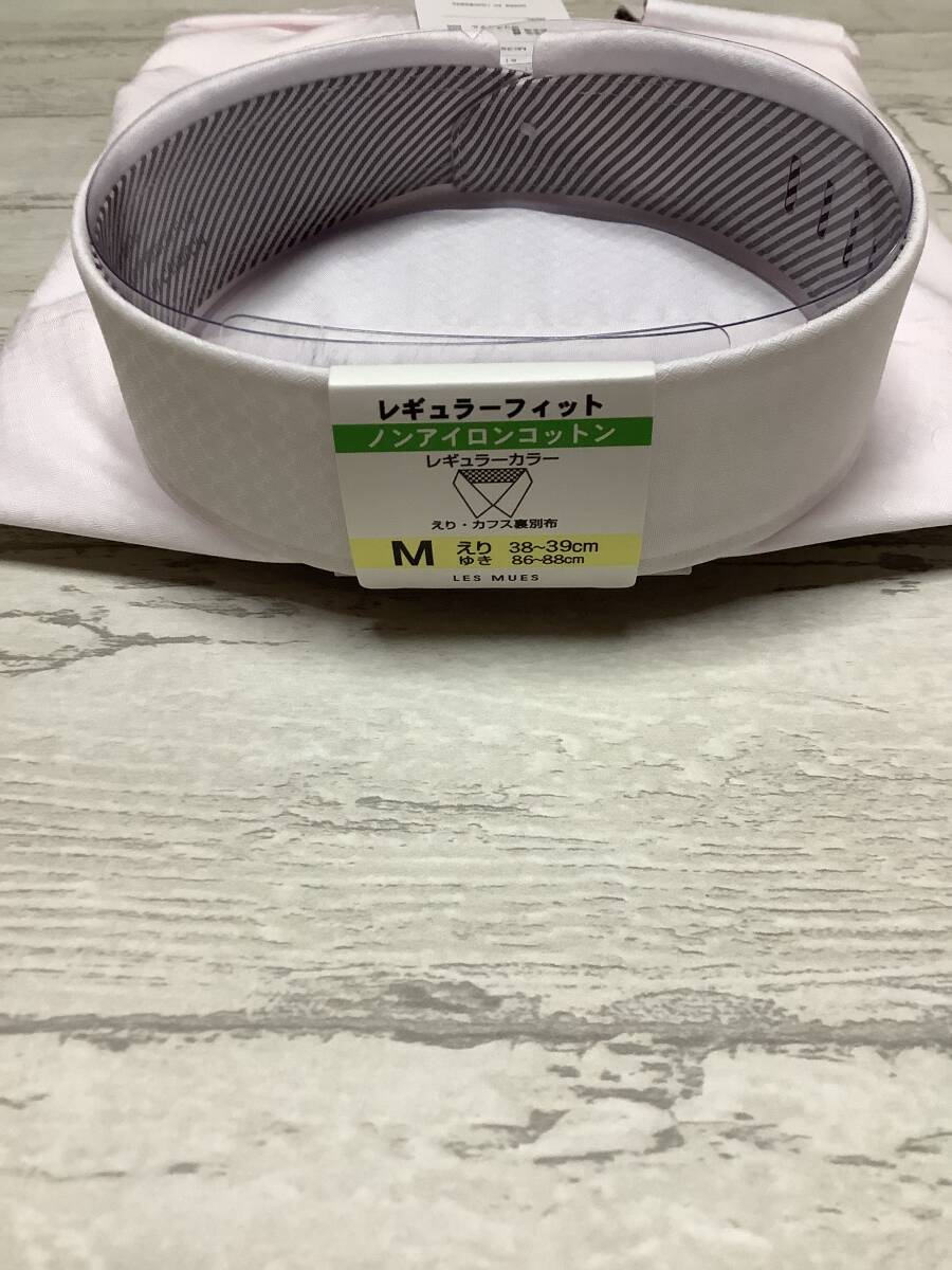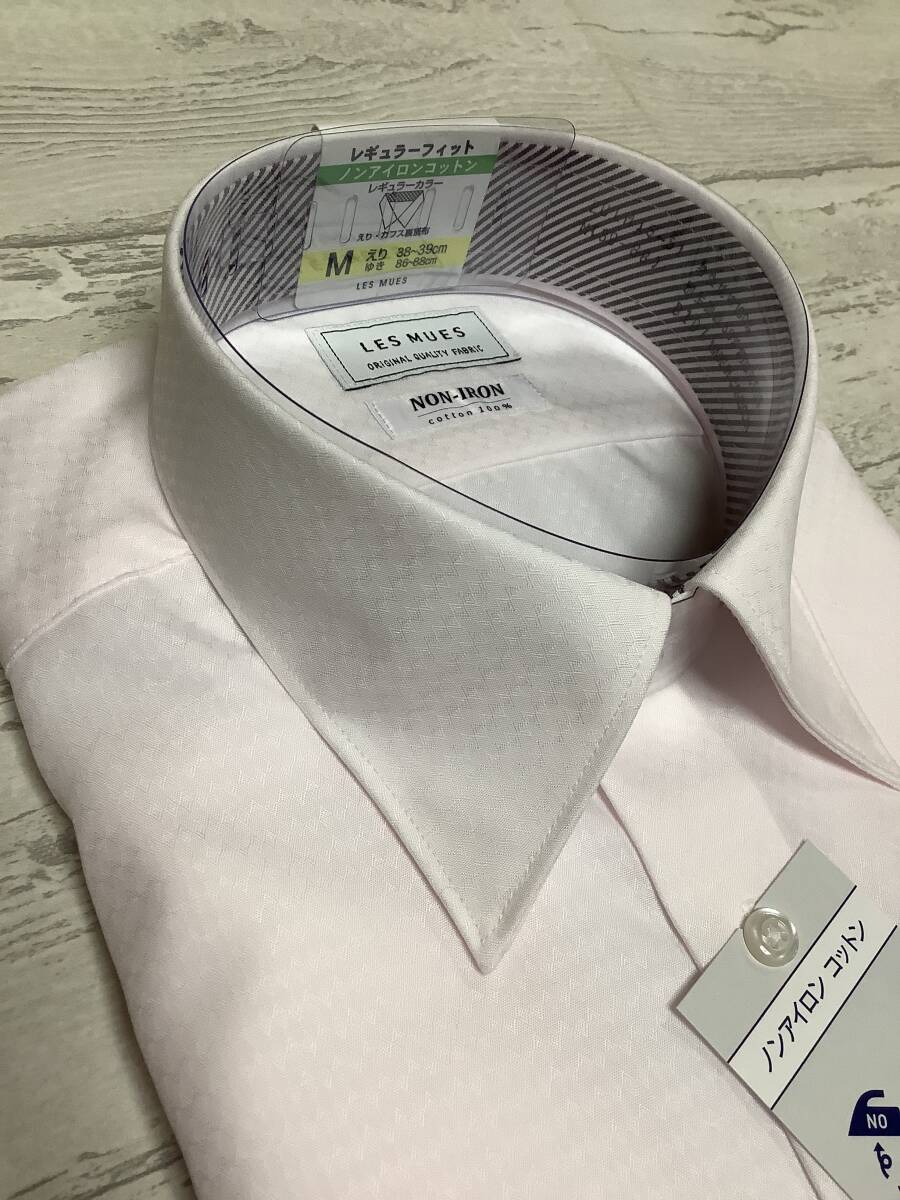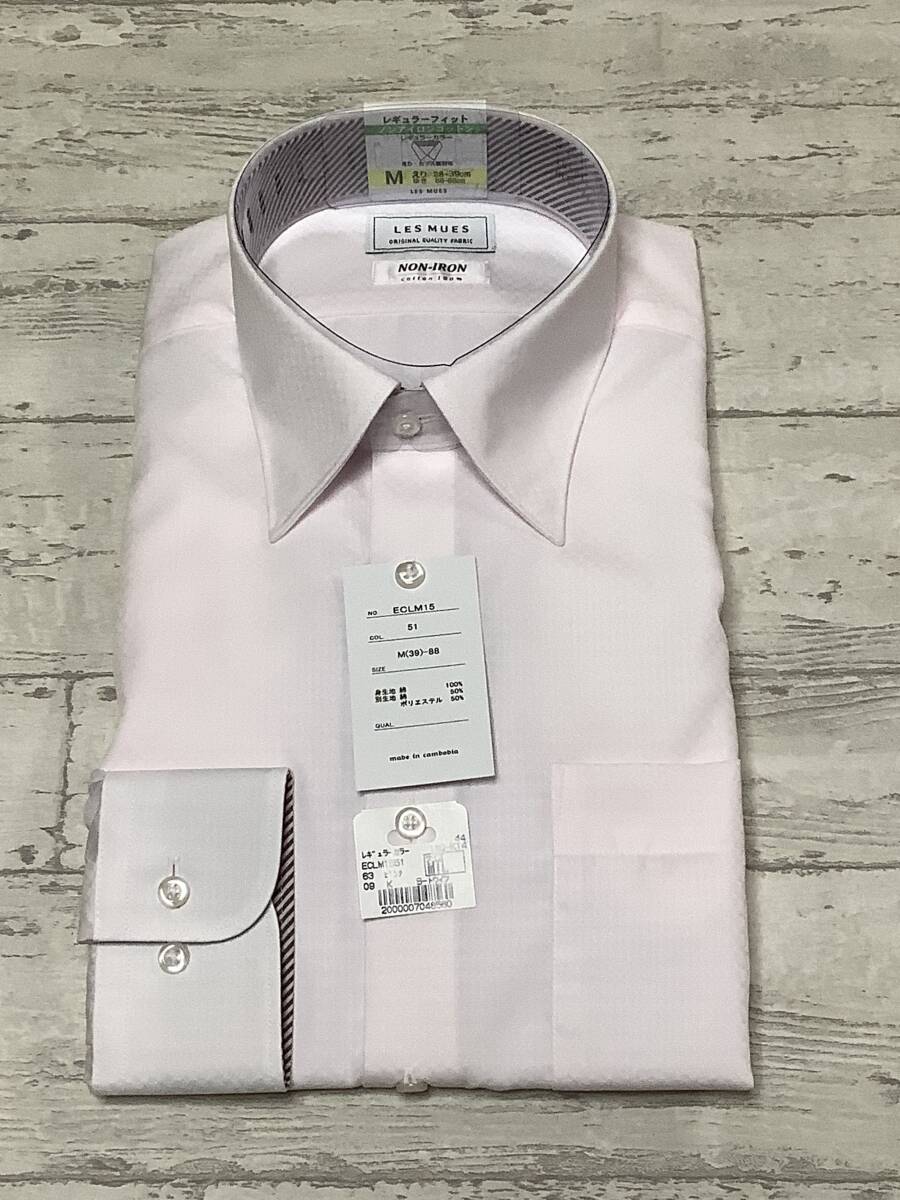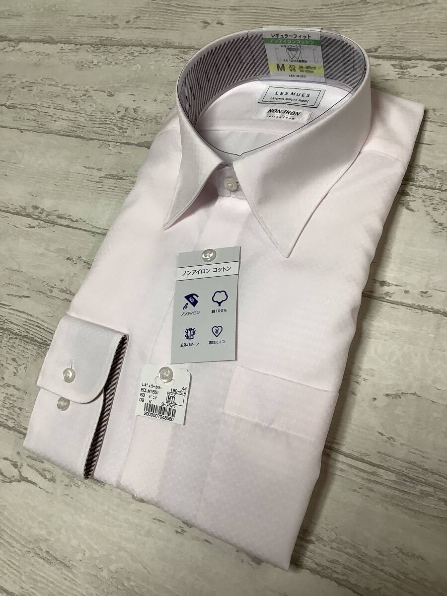 新品未使用 手の長い39-88長袖Mサイズ ピンクドビー生地 シルプルレギュラーカラーカッターシャツ★ドレスシャツ 定価4,990