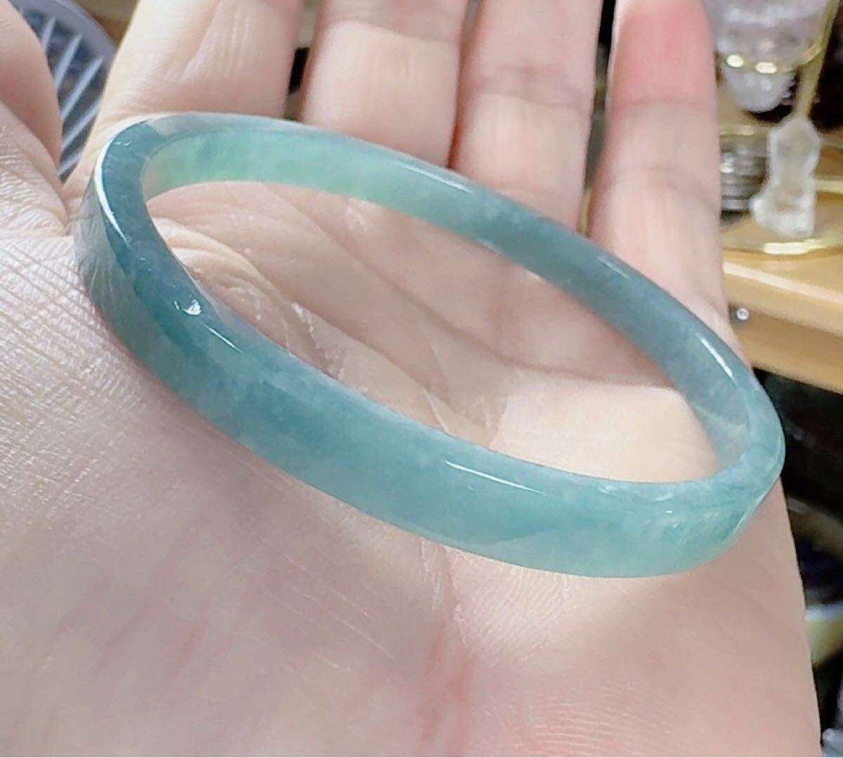 R2-01028天然本翡翠《本物保証》 四方形 翡翠バングル51mm 一点物 希少 縁起物 お守り パワーストーン