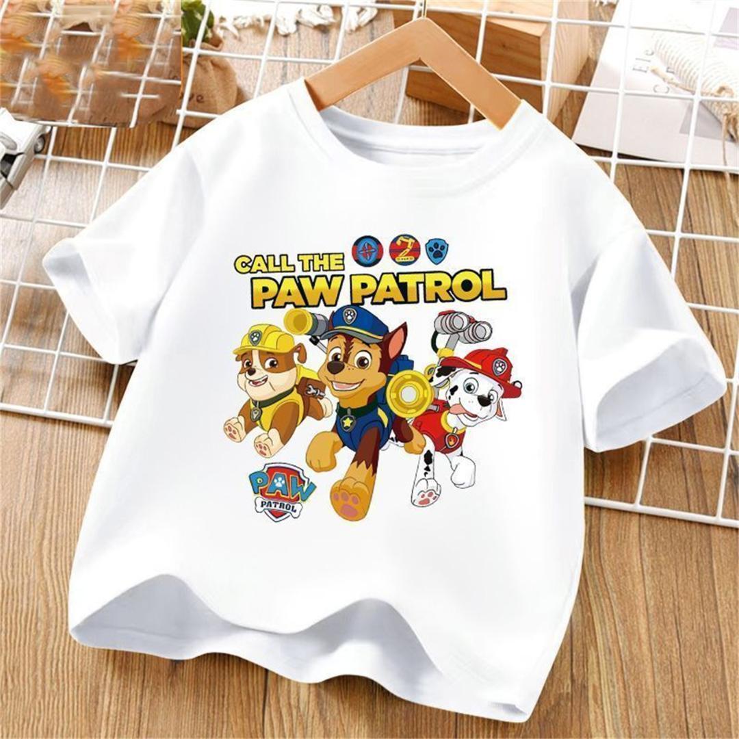 人気「パウパトロール」のかわいいキャラクターがプリントされた子供用Tシャツです。