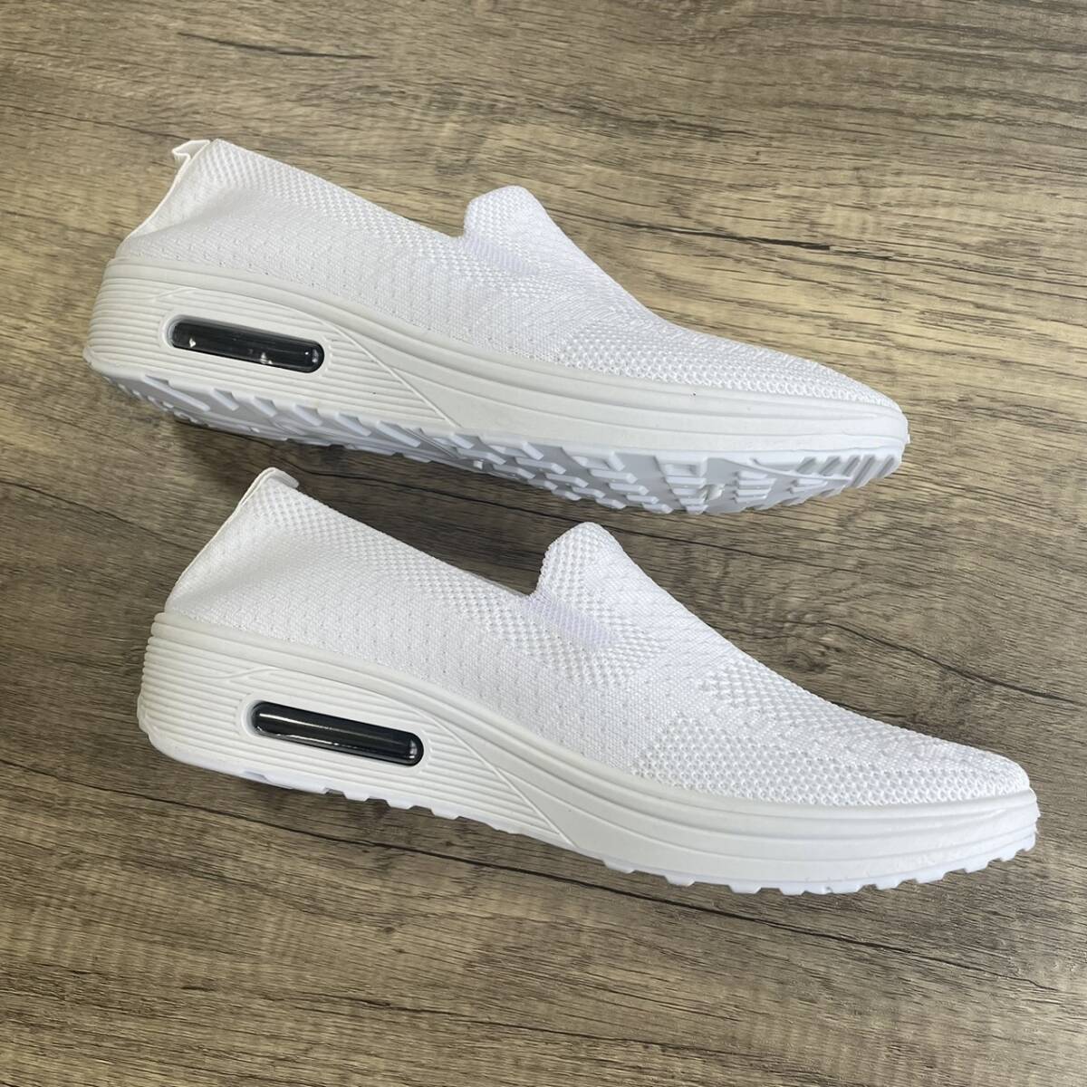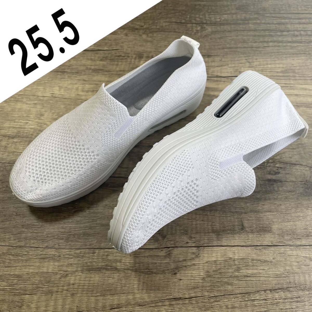 25.5cm WHT エアークッション厚底スニーカー メッシュスリッポンスニーカー
