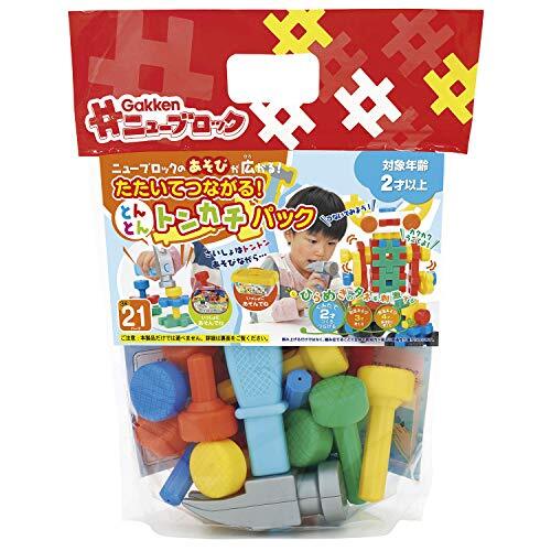 「学研 Gakkenニューブロック たたいてつながる とんとんトンカチパック 83195」▼4905426012827▼(商品説明)2021モデルマルチカラー/トンカチパック/83195・Size:トンカチパックStyle:2021モデル・対象年齢:2才以上・セット内容:ブロック3種21パーツ入り・遊び方無限のニューブロックは、お子さまの「創造性」を刺激し、豊かな「経験」をつくる。・やわらかくて大きいから組み立てやすく、小さなお子さまにも安全。・一般的な積み上げタイプのブロックとは違い、横につなぐ・直角につなぐ・差し込む・挟む・箱を組む遊びは、立体の認知力も高まり、創造性が豊かになる。商品紹介 遊び方無限のニューブロックは、お子さまの「創造性」を刺激し、豊かな「経験」をつくります。 やわらかくて大きいから組み立てやすく、小さなお子さまにも安全です。 一般的な積み上げタイプのブロックとは違い、横につなぐ・直角につなぐ・差し込む・挟む・箱を組む遊びは、立体の認知力も高まり、創造性が豊かになります。 パーツやカラーが豊富なのもニューブロックの魅力です。 お手持ちのニューブロックにちょっぴり買い足し 柔らかいニューブロックならトンカチ遊びも安全です。慣れてきたら、くぎパーツをお手持ちのGakkenニューブロックの可動部に使って、カクカク動くロボットやどうぶつなどを作れます。 本製品だけでは遊べません。 安全警告 ●おとなといっしょ●くちにいれない●ひにちかずけない●うえにのらない