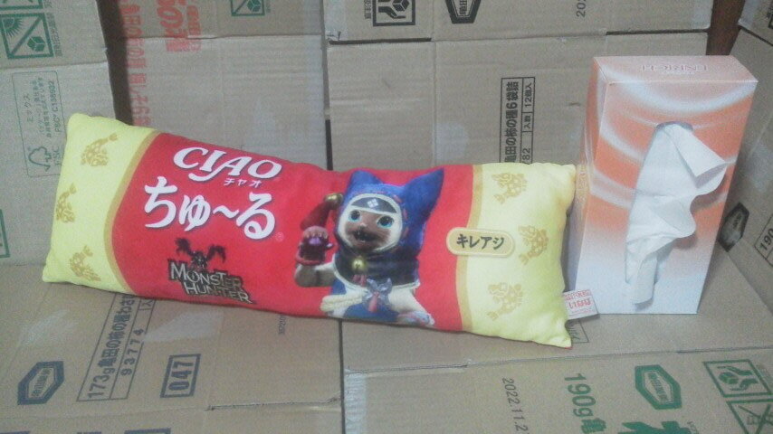 モンスターハンター×CIAOちゅ~る ロングクッション サシミウオ キレアジ 猫 キャットフード 送料450円
