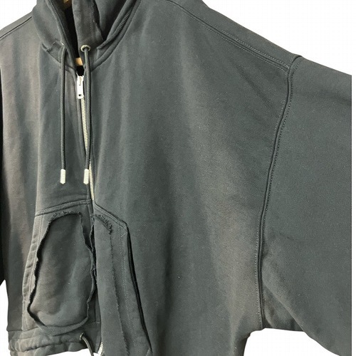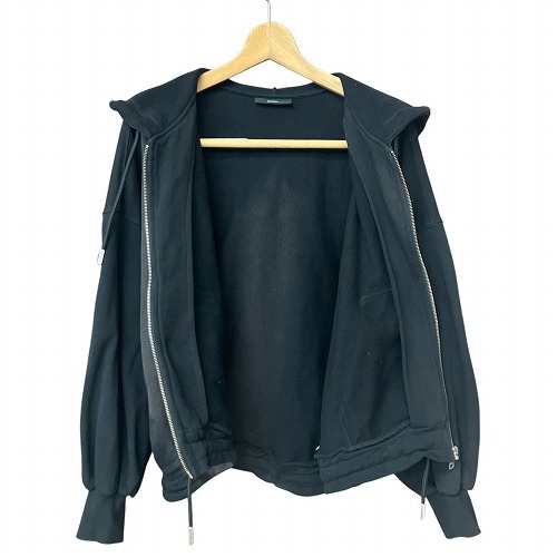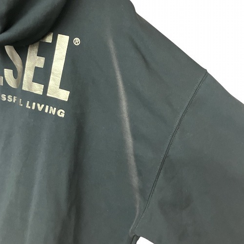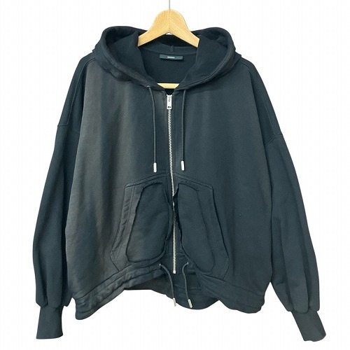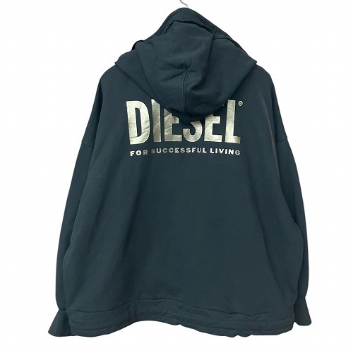 ディーゼル DIESEL F-BILLY-LOGO フルジップ パーカー フーディー ロゴ ダメージ加工 フェード感 黒 ブラック XXS ☆AA★ レディース