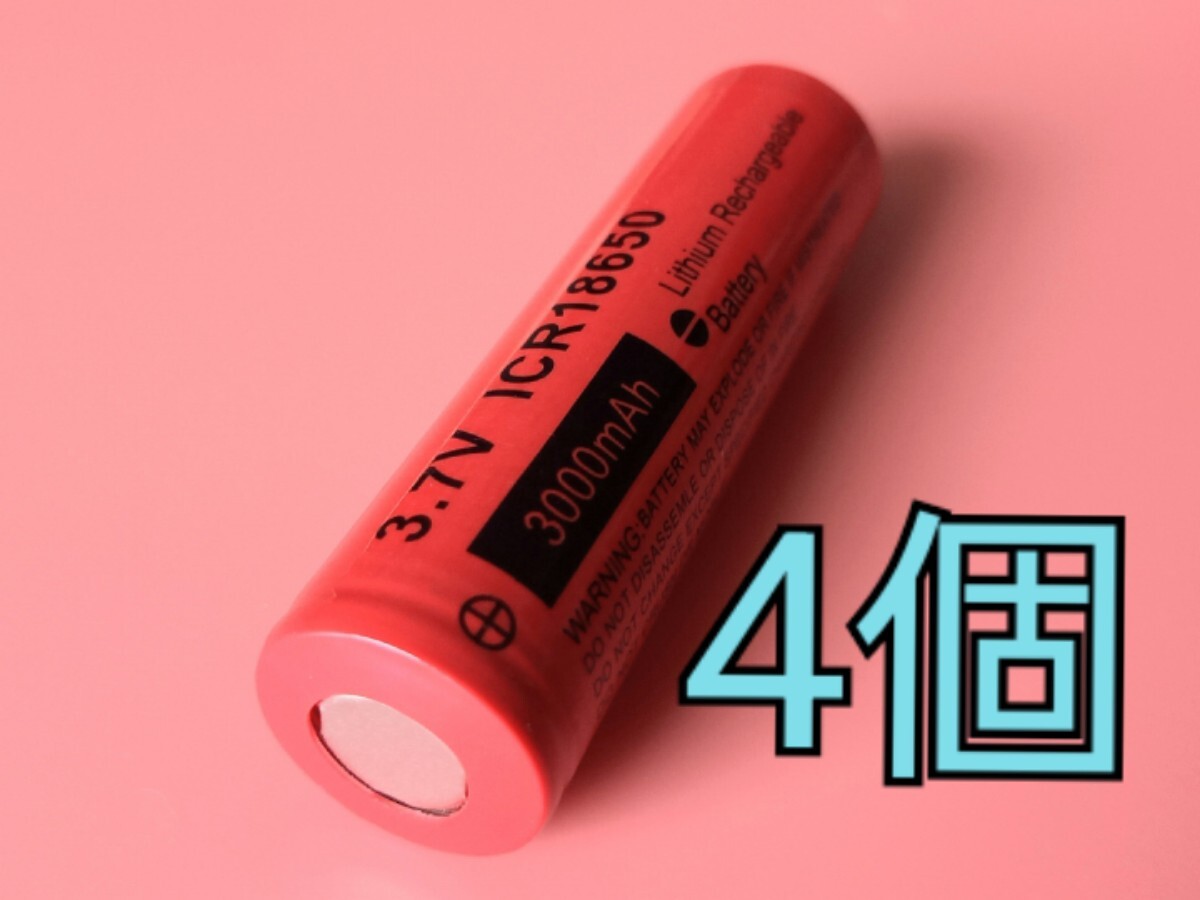 18650充電バッテリー 3000mAh フラットタイプ(Li-ion 3.7V Rechargeable Battery)4個