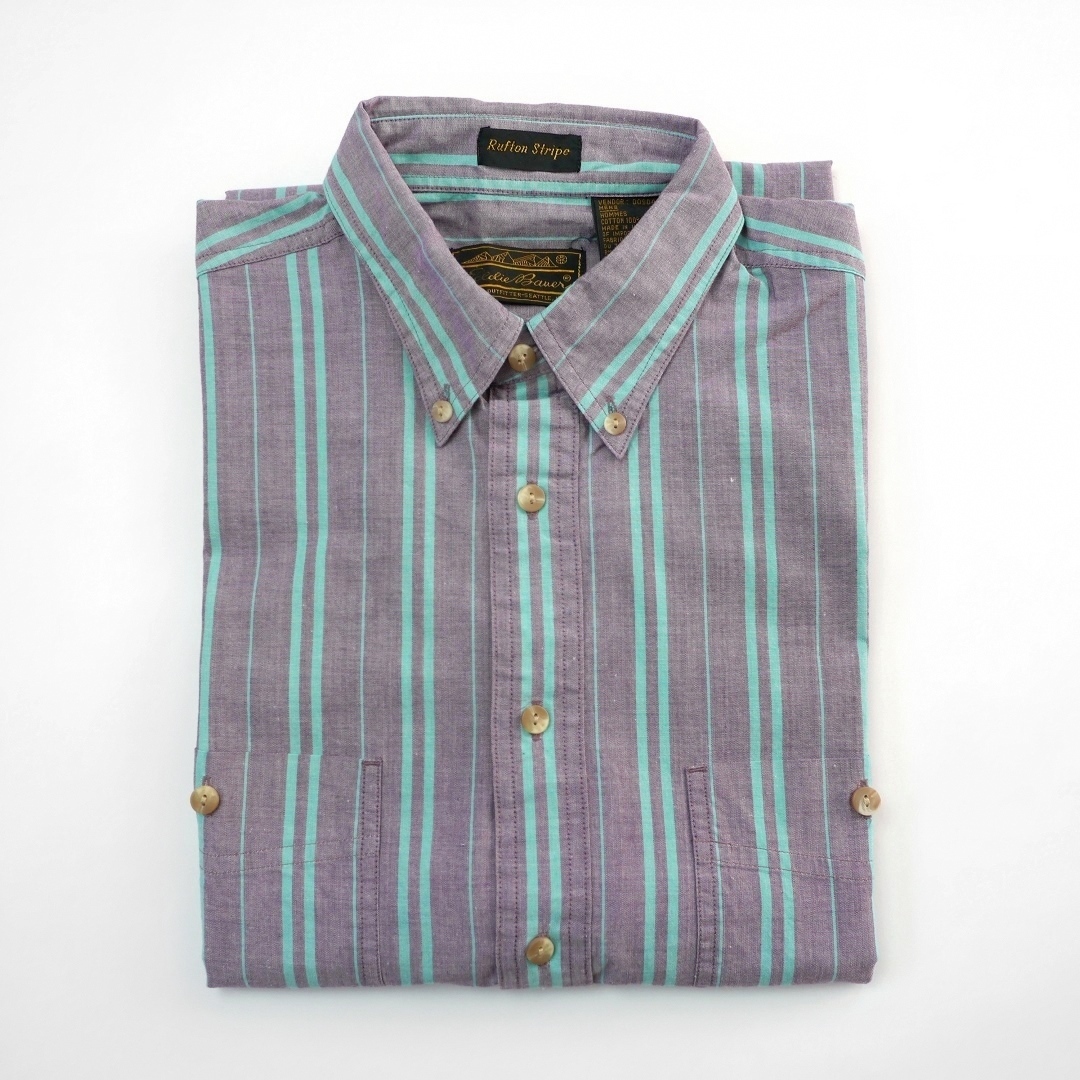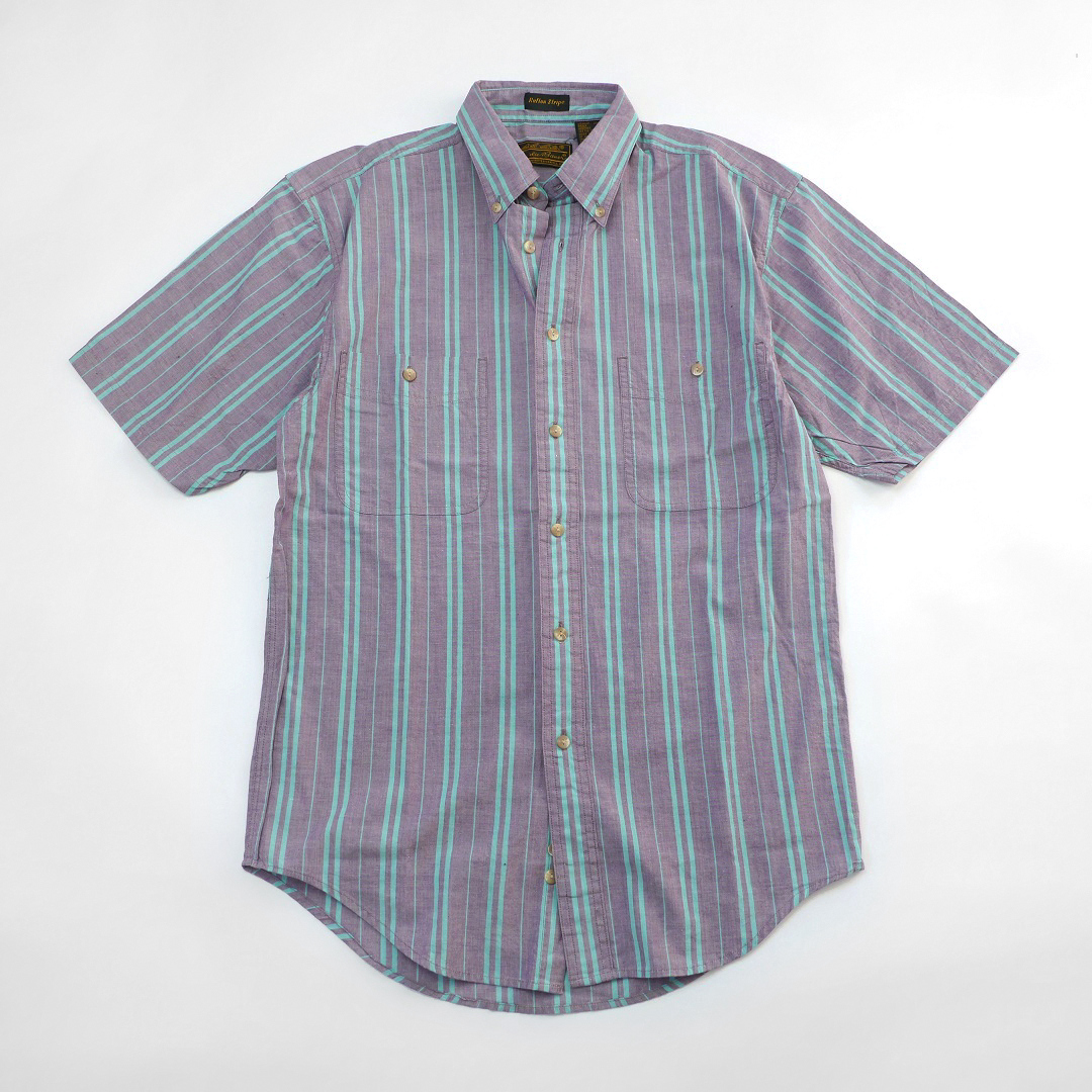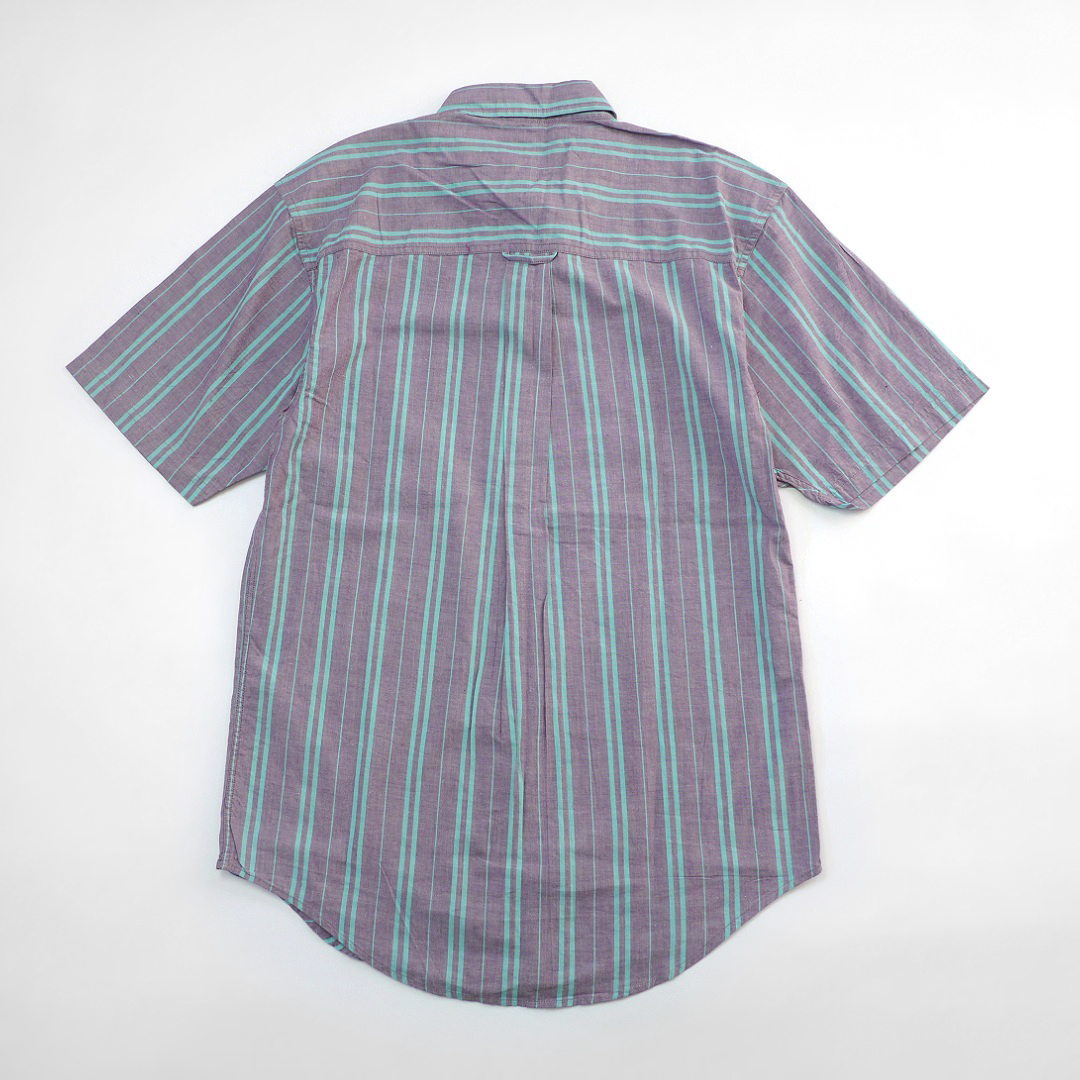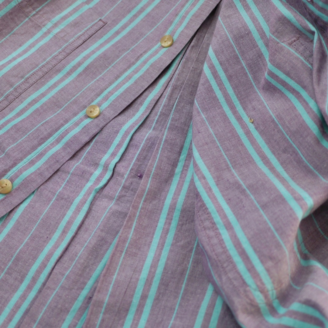 ■ブランド 80s-90s、Eddie Bauer、Rufton Stripe、MADE IN USA ■カラー 薄紫色×薄水色(パープル×エメラルドグリーン系) ■素材 100% COTTON ■詳細 アメリカで購入したエディーバウアーのストライプボタンダウンシャツです。 80年代-90年代ごろの黒タグでアメリカ製になります。 モデル名はラフトンストライプ、ラフトンツイルとは異なる薄めのオールコットン生地です。 ネオンストライプのような独特のカラーリングで最高に雰囲気があります。 マルチストライプ/ダブルストライプのデザインもイイ感じにお洒落です。 ■状態 デッドストックです。 生地のシームなどにシワ感が多少ありますのでプレウォッシュモデルかもしれません。 経年保管による多少のシワ、所々に製織時に生じたネップあとあり。 着用に問題あるダメージはなく良好です。 ■サイズ 表記 S *実寸参考下さい 身幅や首周りはSM相当ですがビッグシルエット?で肩幅袖丈着丈は作りが大きめです。 身幅はセンターボックスプリーツ入りで若干広がります。*実寸参考下さい 着丈前 78cm 着丈後 80cm 肩幅 49cm 身幅 50cm-52cm 腰幅 51cm 裄丈 51cm 脇袖丈 15cm 肩袖丈 26cm ■注意事項 状態は細かく確認しておりますが、傷や汚れの見落とし、実寸誤差、色味差異など生じる場合がございます。 不明な点がありましたら入札前にご質問下さい。 商品にあわせて洗濯やクリーニングメンテナンスを施しておりますが、ビンテージやアンティークなど中古品になりますので特性のご理解をお願いします。 |