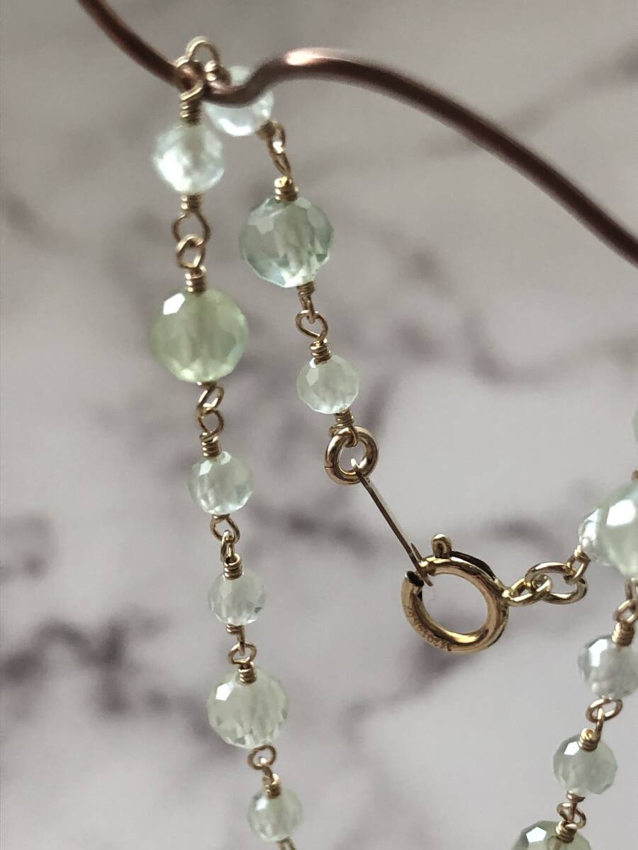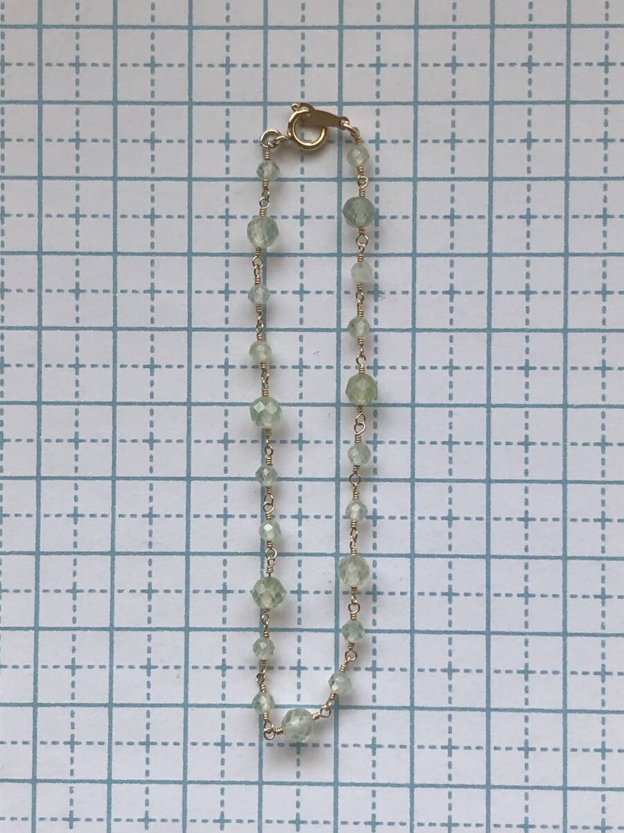 数多くの出品商品の中からご覧頂き誠にありがとうございます。 2つのサイズのプレナイトをワイヤーで繋げたブレスレットです。 半透明の淡いミントグリーンが可愛いお色で、カットのキラキラが華を添えます。 ※ご使用後はジュエリークロスで優しく拭いて頂くと、艶や輝きを保てます。 ジュエリークロスは、眼鏡や時計を購入した際に付いている布でも大丈夫です。 ※ 以前に別サイトにて出店しネット販売をさせて頂いておりました。 時間的に継続が難しくなり撤退後、普段は自身と身の周りの方々に作成していますが、材料の在庫過多のため限定数で出品させて頂きます。宜しかったらどうぞお迎えご検討ください。 |