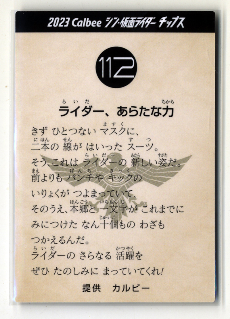 | ◆防水対策 厚紙補強 №112番 ライダー、あらたな力 カルビー シン・仮面ライダーチップスカード 第2弾 送料無料 即決 | |