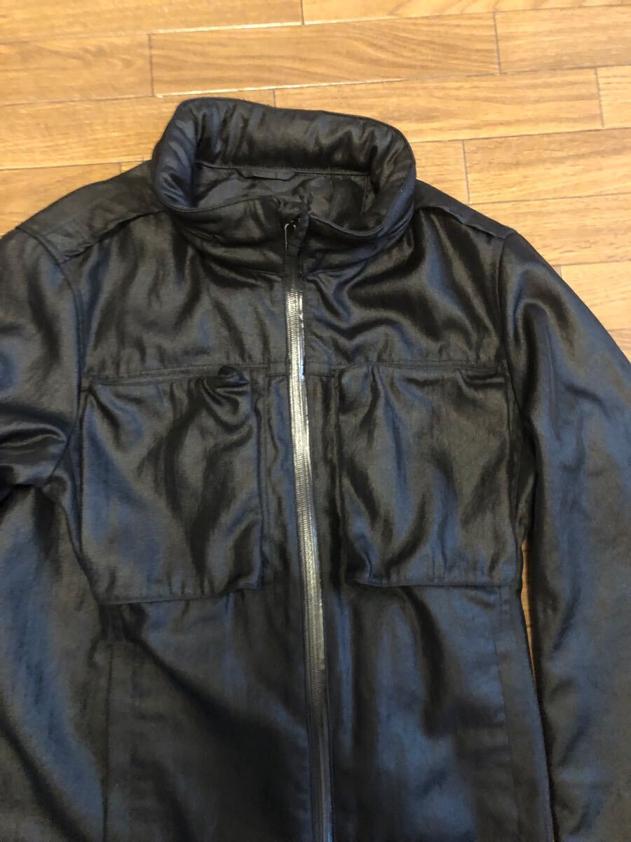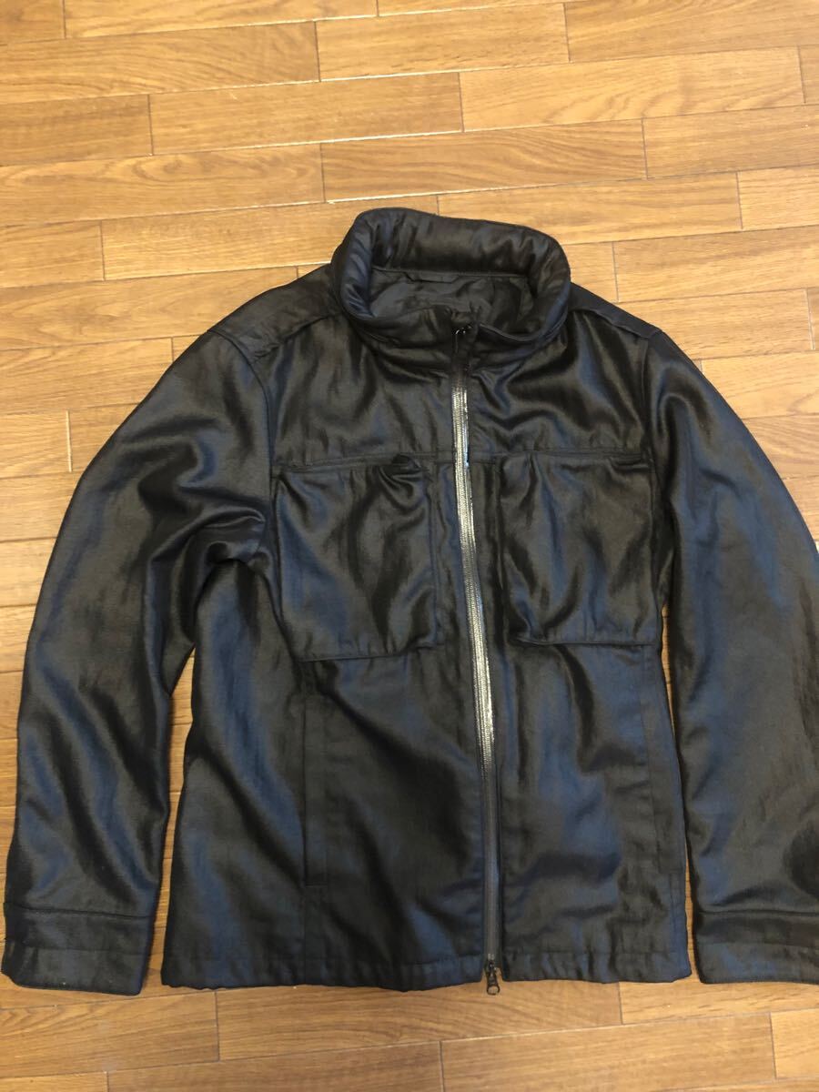 止水ジップで厚手のナイロン素材の様なもので作られています。両胸に大きなポケットがあります。