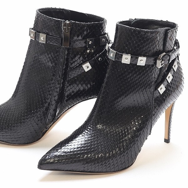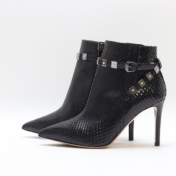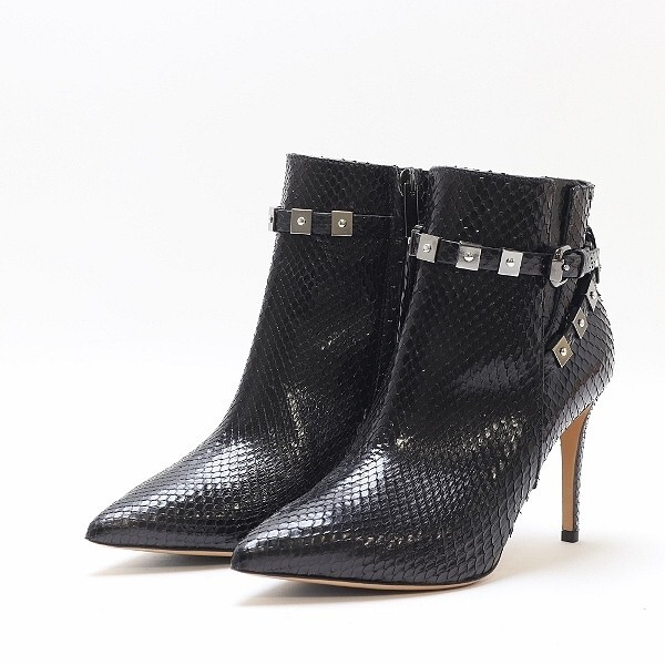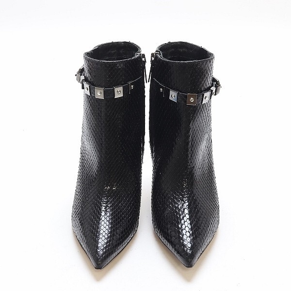 | 美品◆BLOUNGE ビーラウンジ パイソンレザー ベルトデザイン ポインテッドトゥ ヒール ショート ブーツ 黒 ブラック 35 1/2 | |